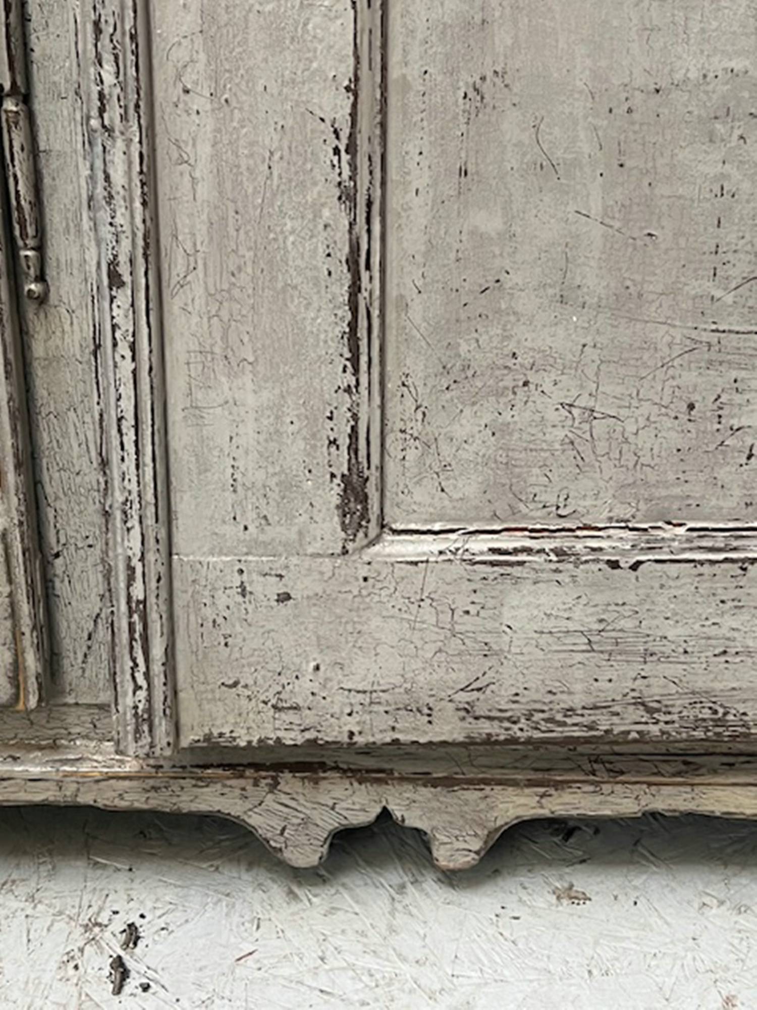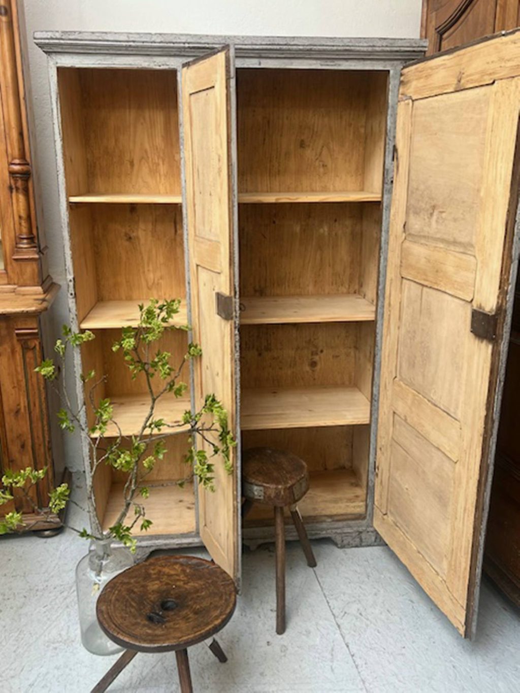 This beautiful wardrobe is a wonderful piece of primitive craftsmanship. To emphasize the unique look, it was carefully cleaned and the surface has been decoratively patinated. This wardrobe is a precious piece of old folk art.