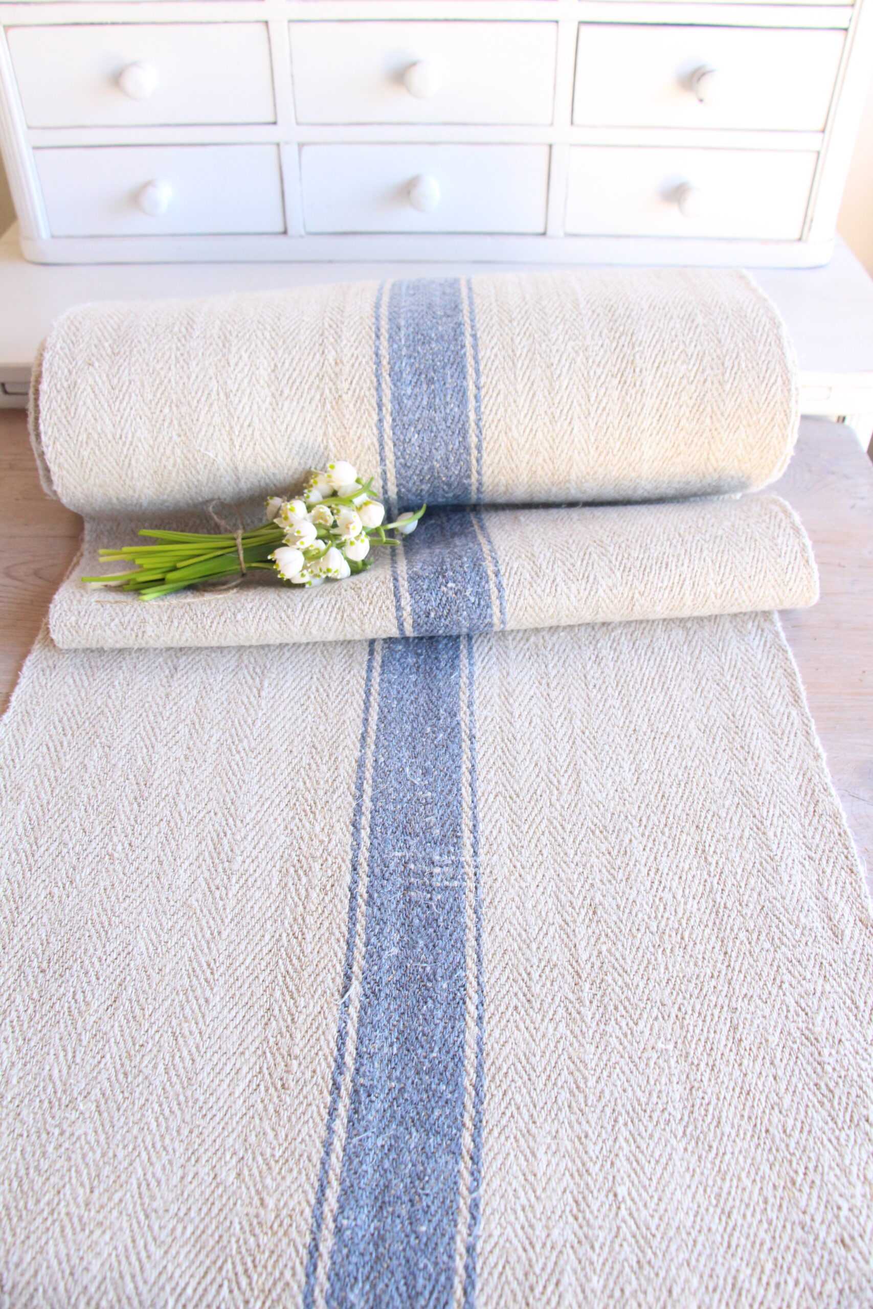antique linen grainsack, stair runner, rustic farmhouse decor, durable, L 784