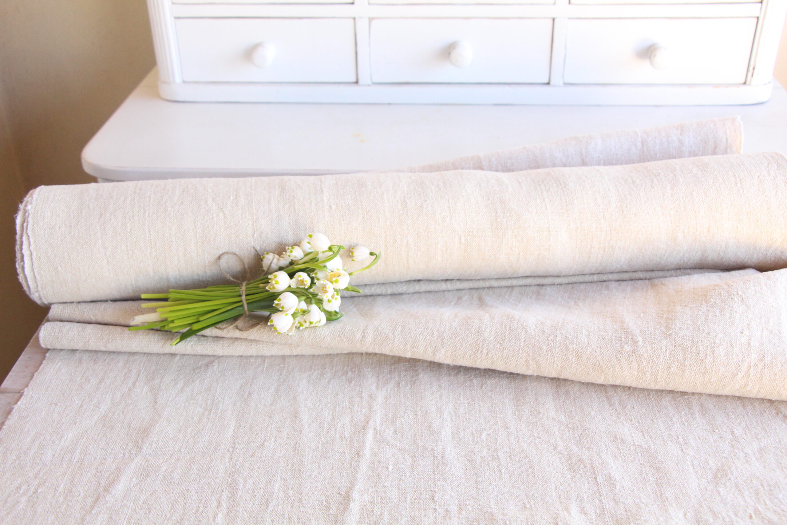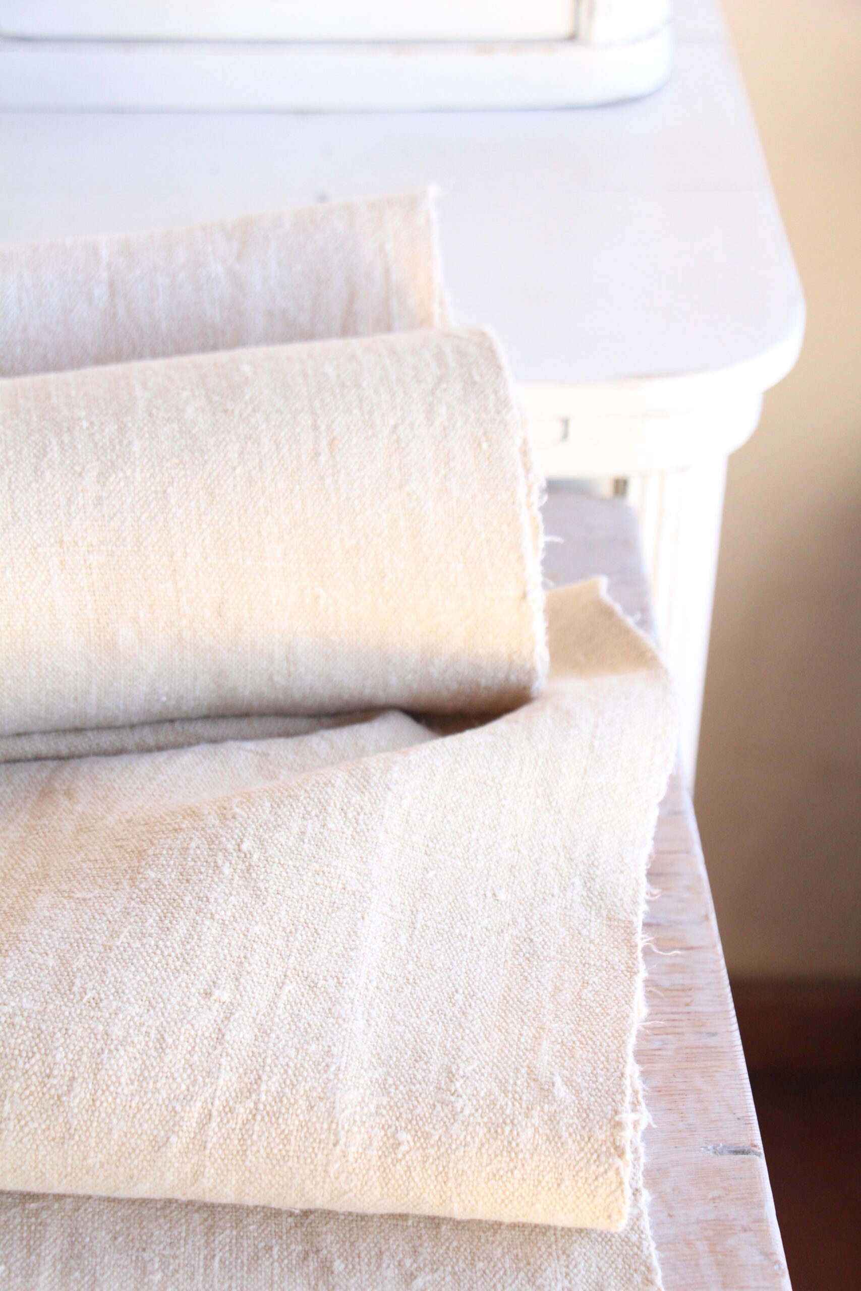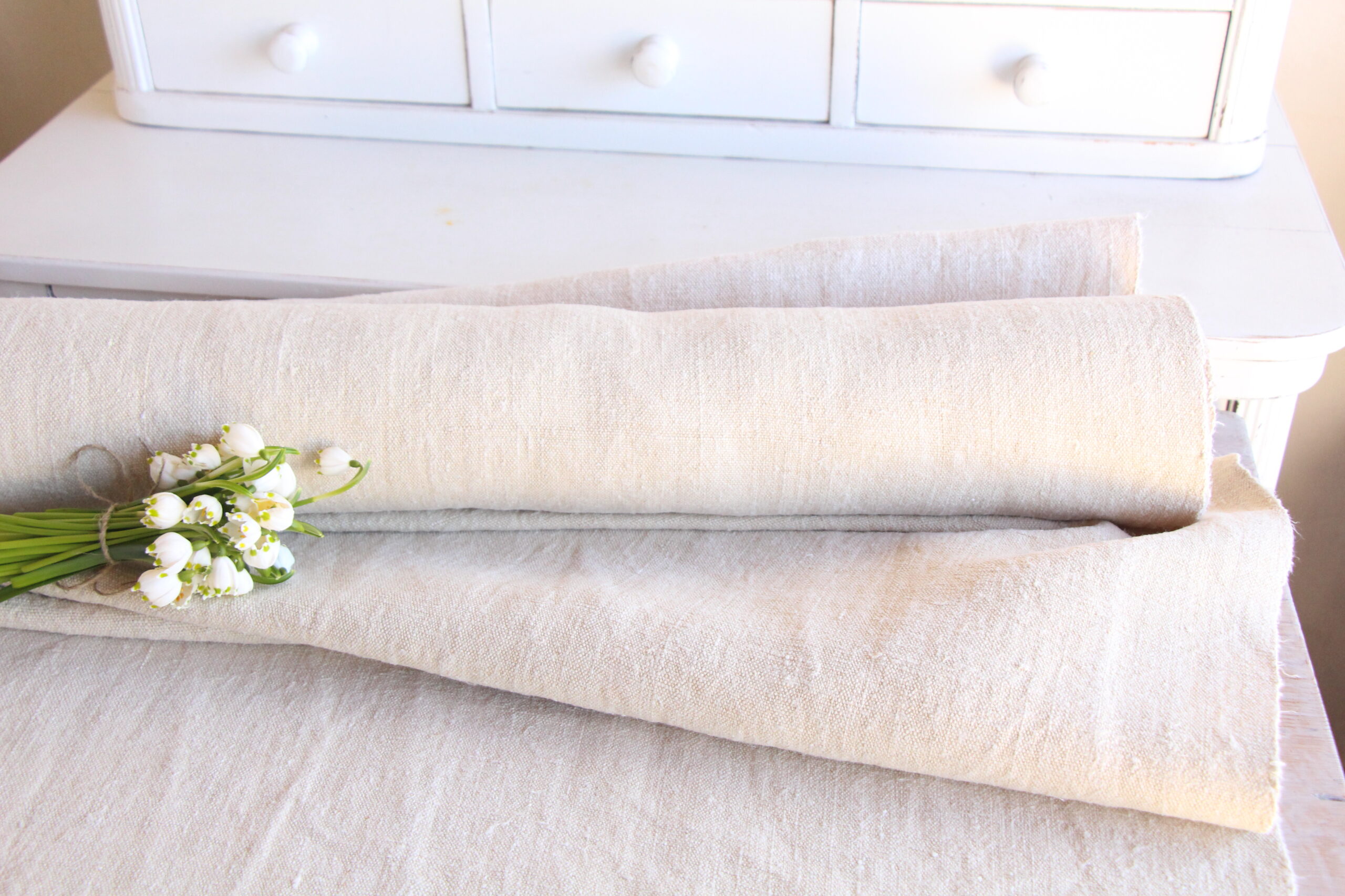 All of our linen rolls and grain sacks are unique in their texture and color, but they are all wonderful treasures of textile folk art. They are 100% organic and completely free from chemical substances, freshly laundered, perfectly clean, and ready for your creative projects.