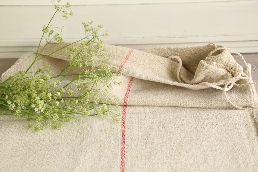 These antique grain sacks and linen rolls were made around 1900-1909