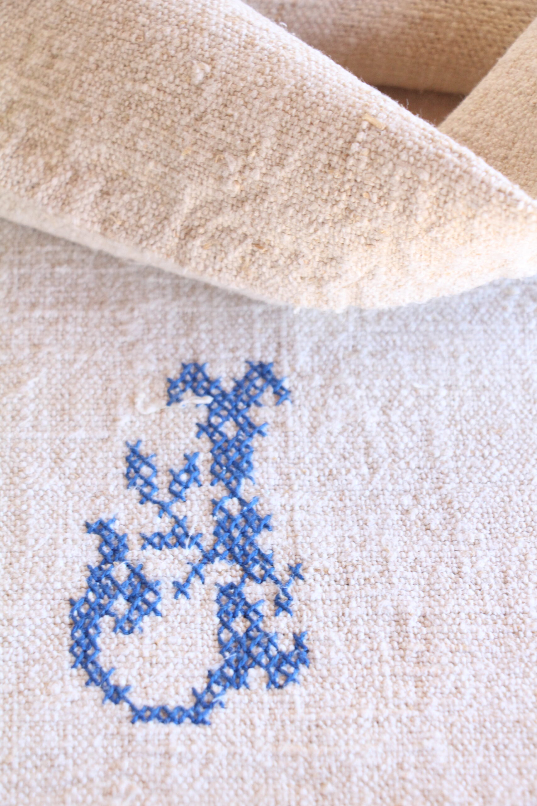 Special feature: The grain sack has a charming hand-sewn Monogram L J