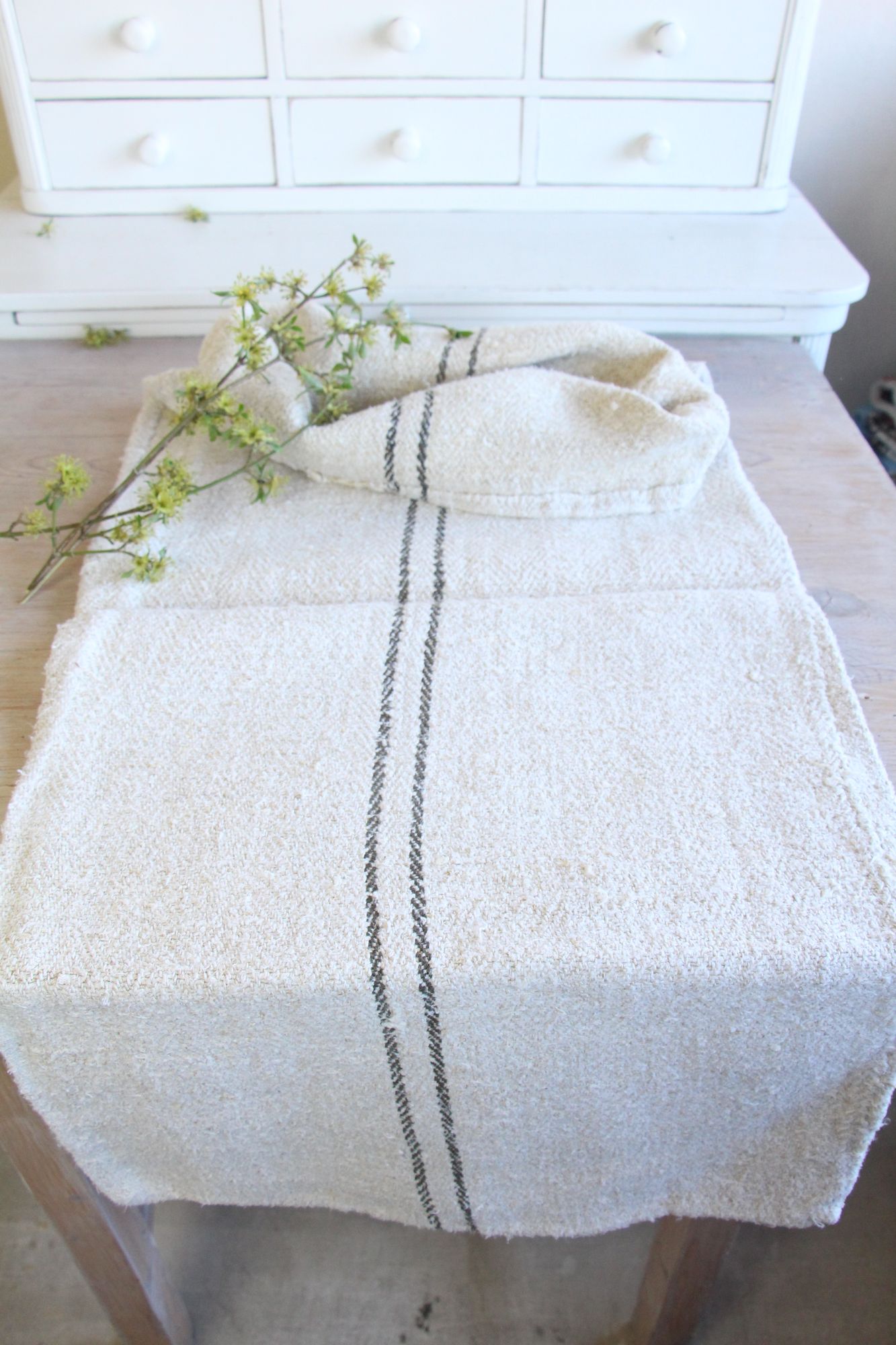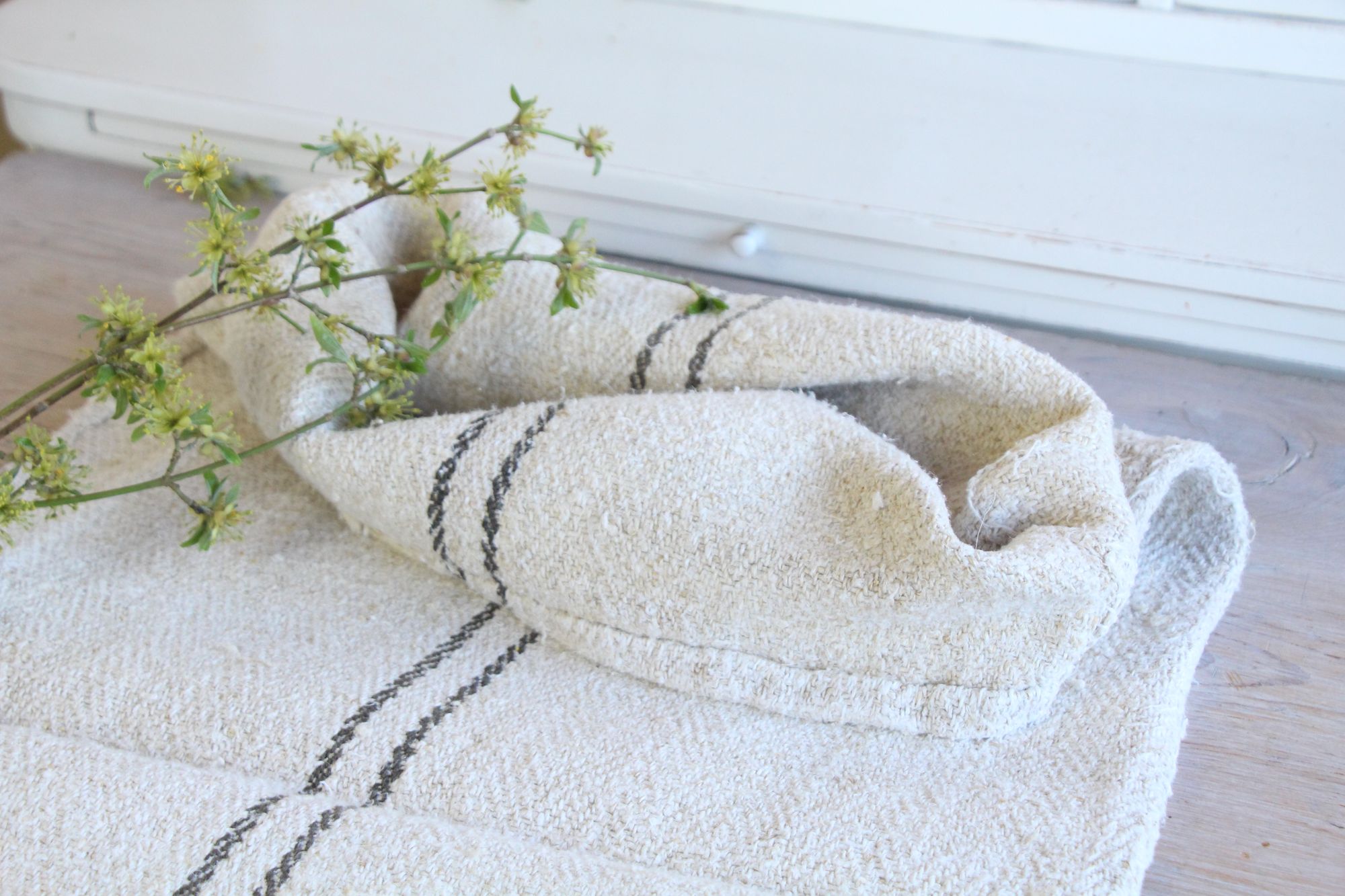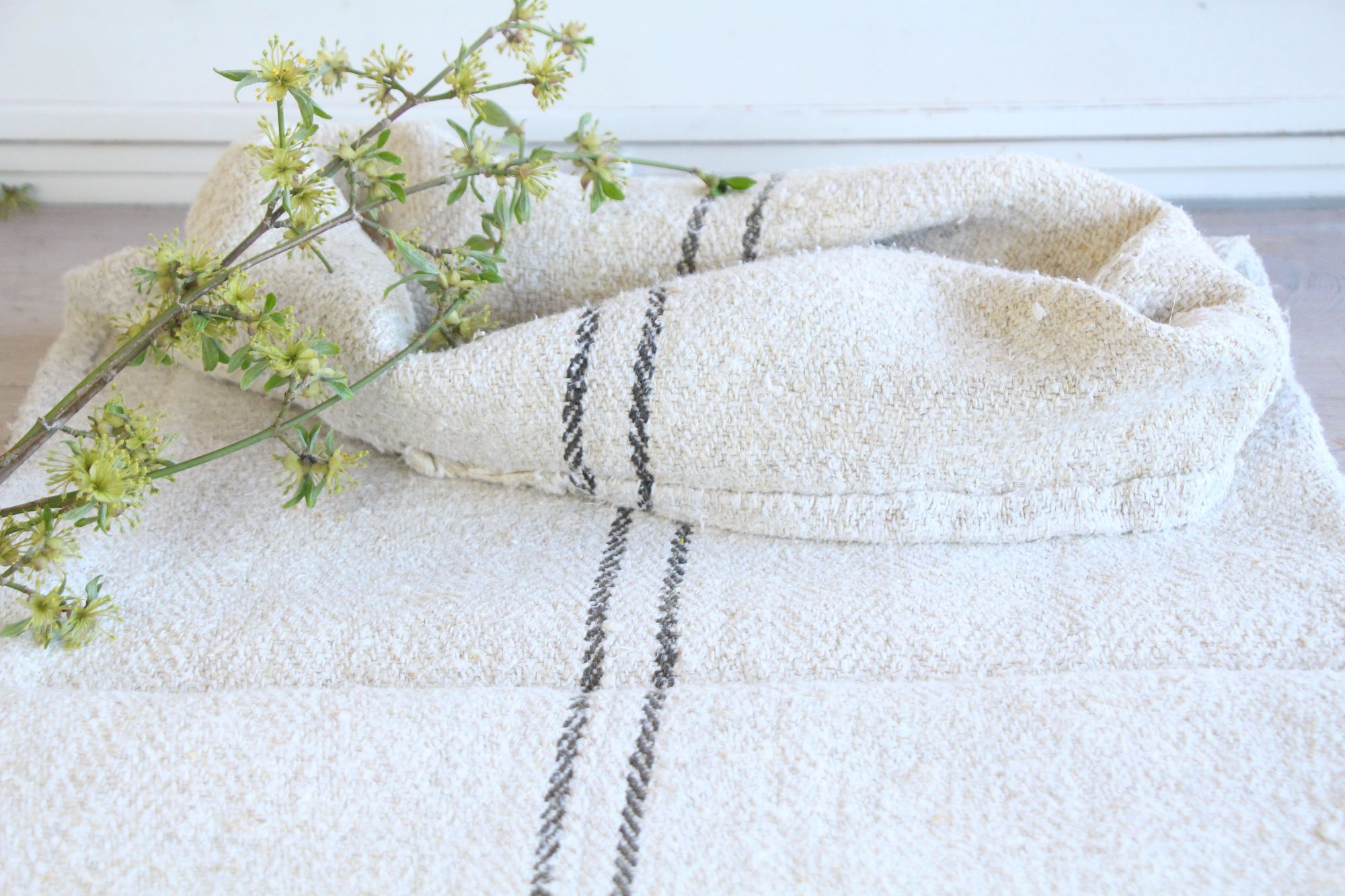 All of our linen rolls and grain sacks are unique in their texture and color, but they are all wonderful treasures of textile folk art. They are 100% organic and completely free from chemical substances, freshly laundered, perfectly clean, and ready for your creative projects.
