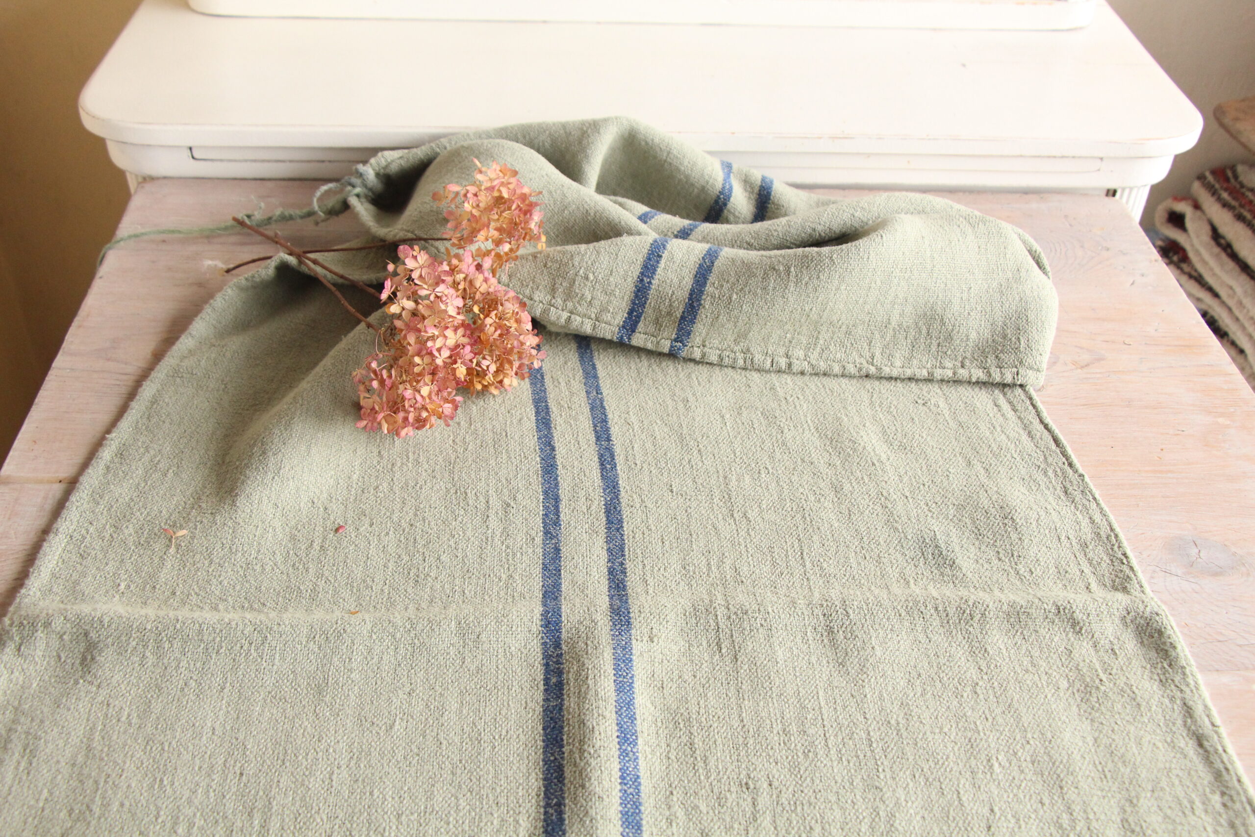 All of our linen rolls and grain sacks are unique in their texture and color, but they are all wonderful treasures of textile folk art. They are 100% organic and completely free from chemical substances, freshly laundered, perfectly clean, and ready for your creative projects.