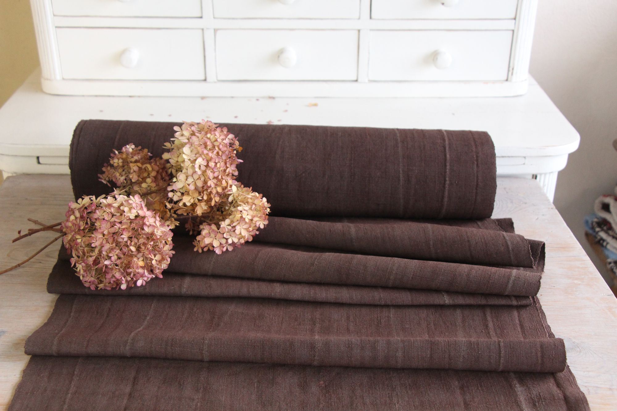 All of our linen rolls and grain sacks are unique in their texture and color, but they are all wonderful treasures of textile folk art. They are 100% organic and completely free from chemical substances, freshly laundered, perfectly clean, and ready for your creative projects.