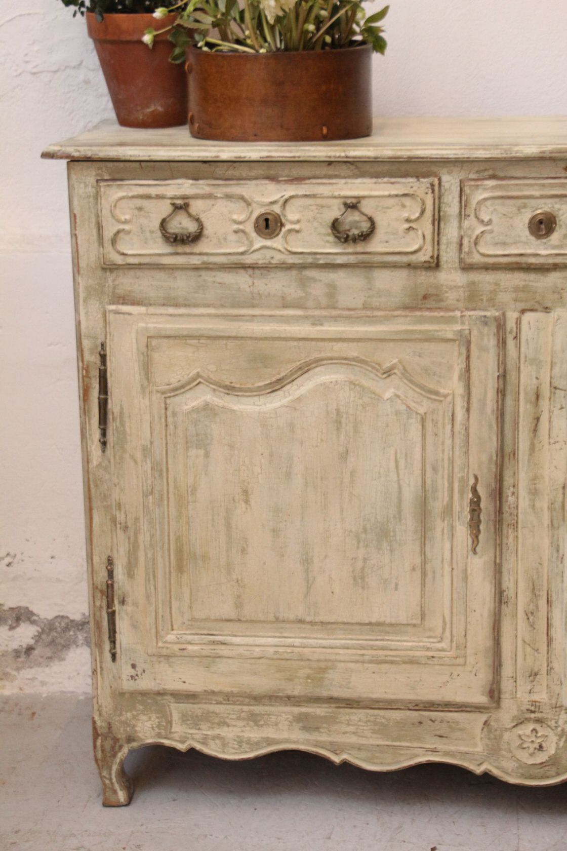 handgefertigte antike josefinische Anrichte Eichenholz polychrom gefasst A 429
