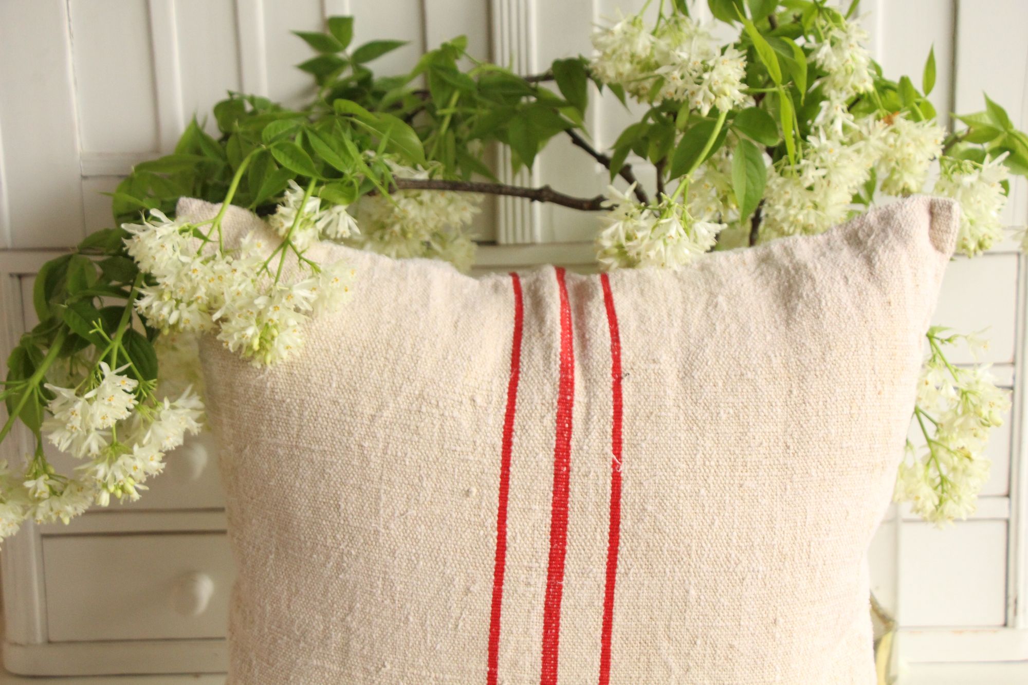 Stoff: 100 % biologisches und organisches antikes Leinen, etwa 100 Jahre alt und in ausgezeichnetem Zustand