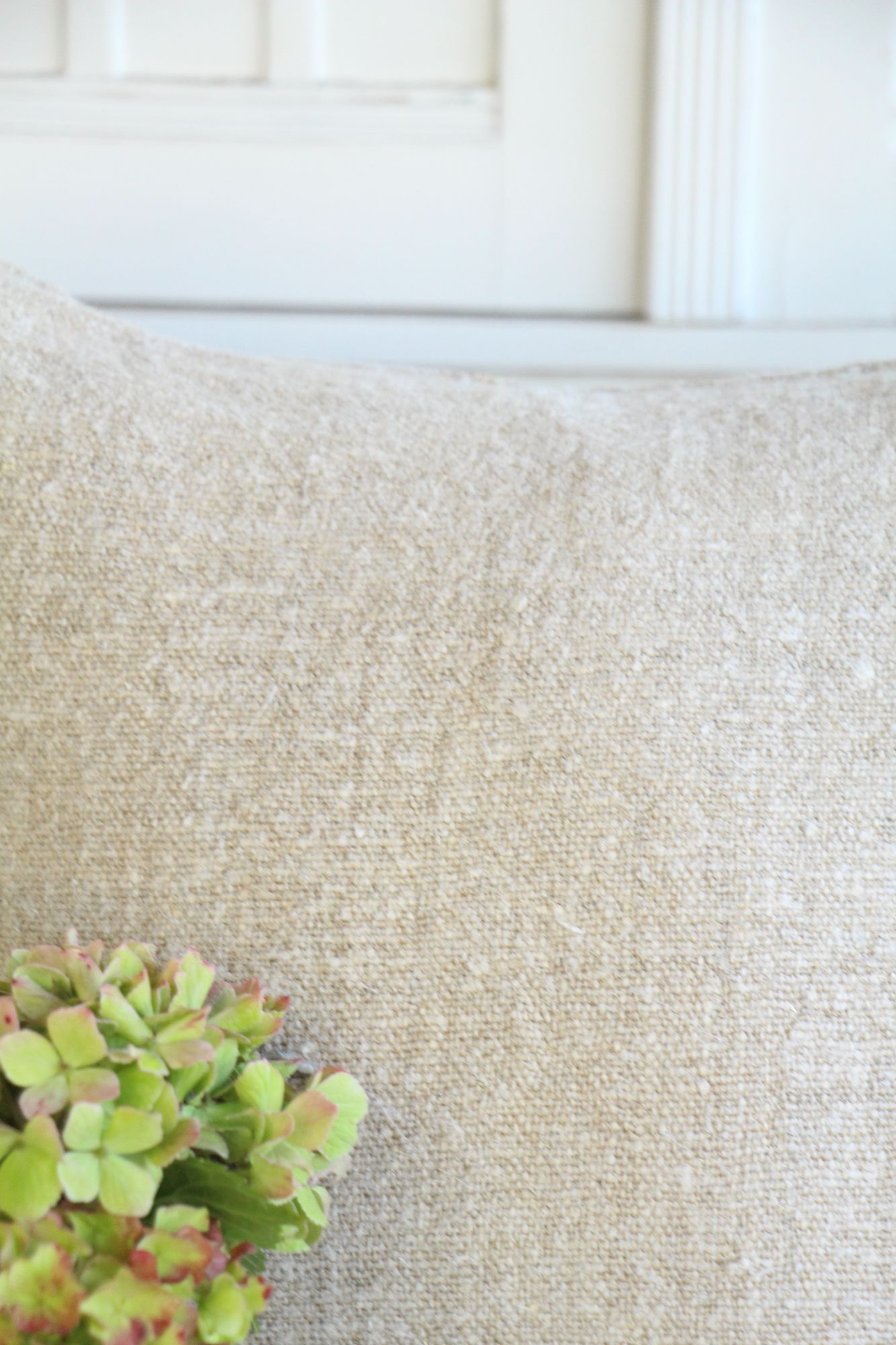 Bitte beachten: Beide Seiten des Kissens sind aus dem gleichen Leinenstoff gefertigt.