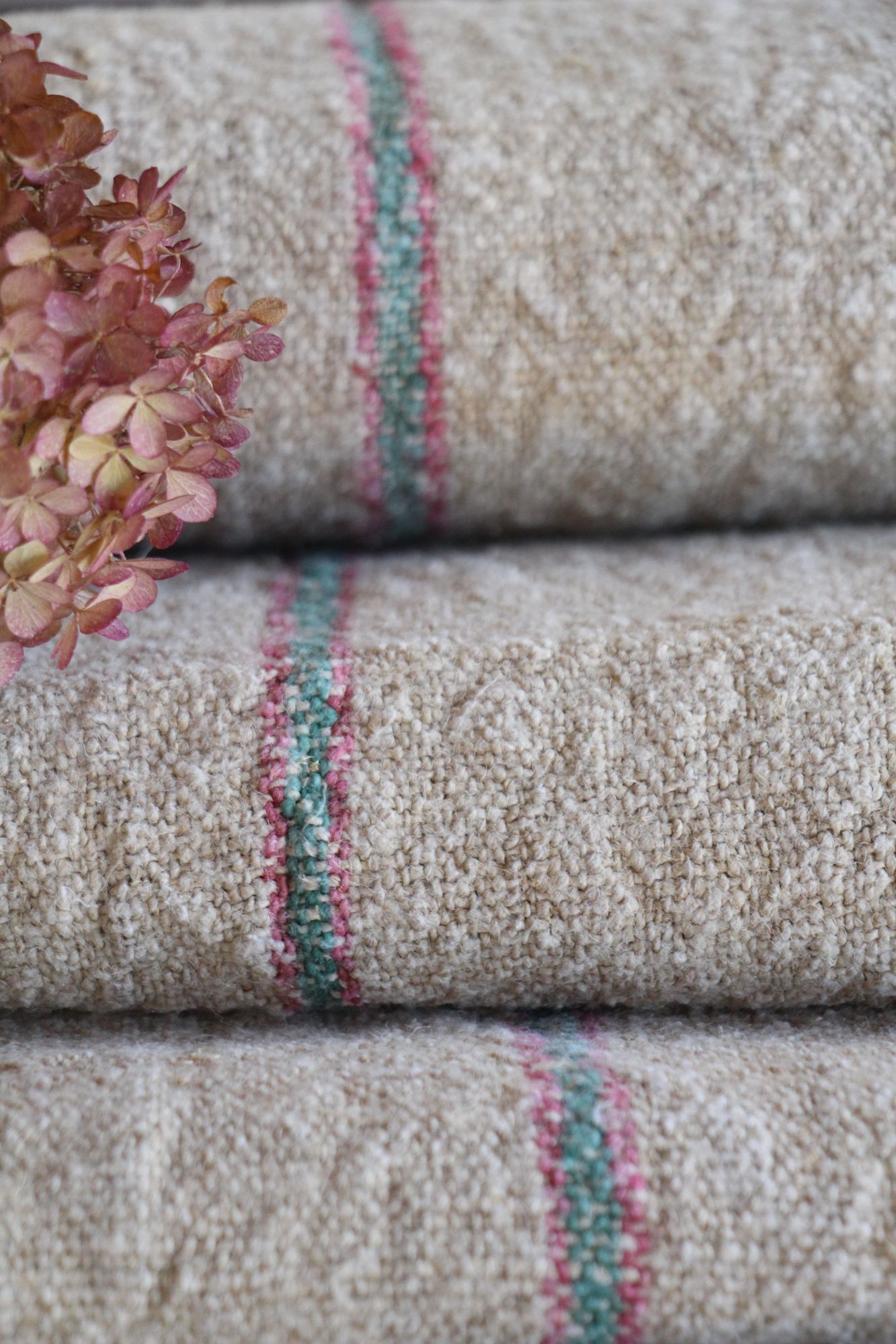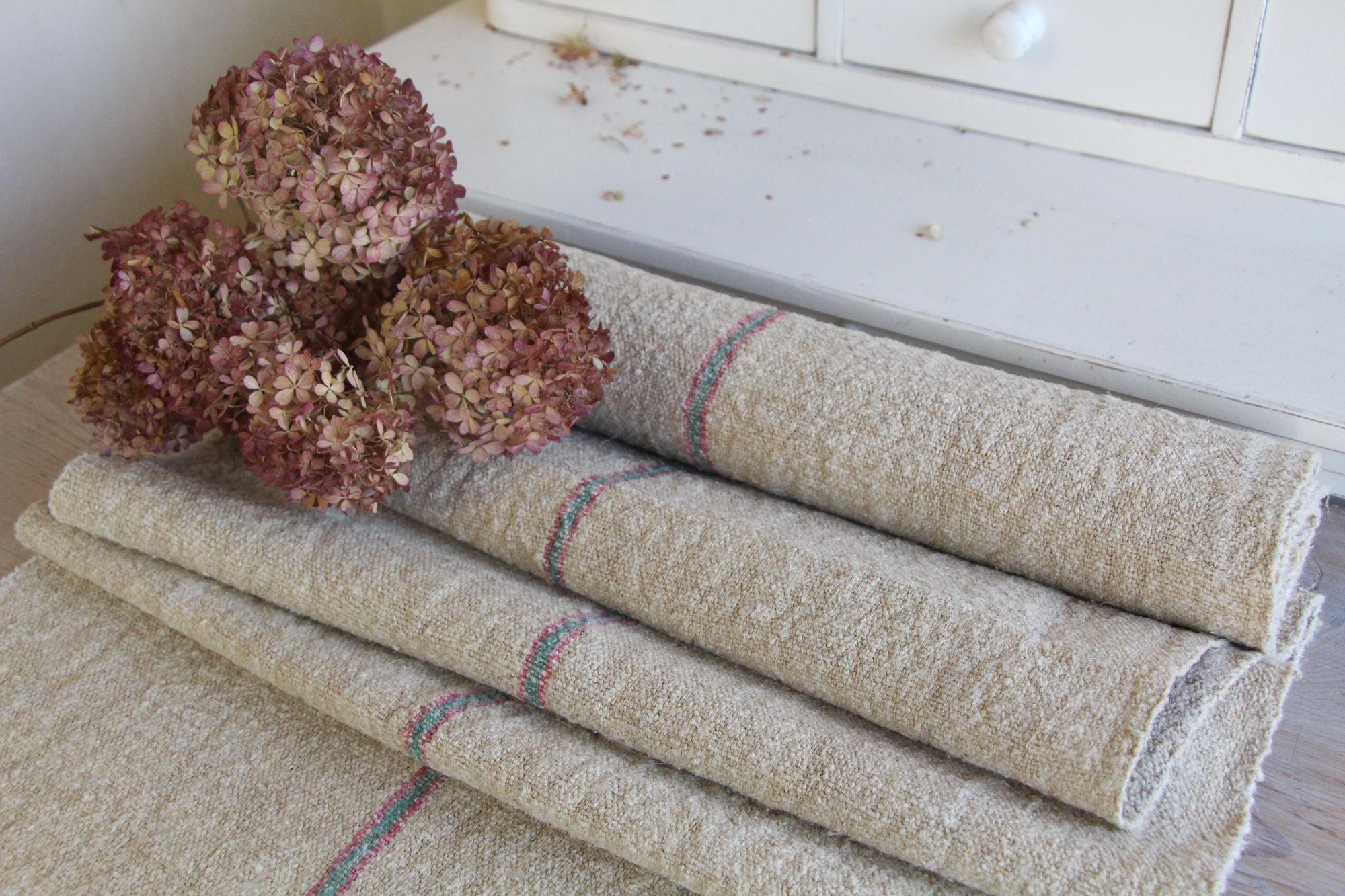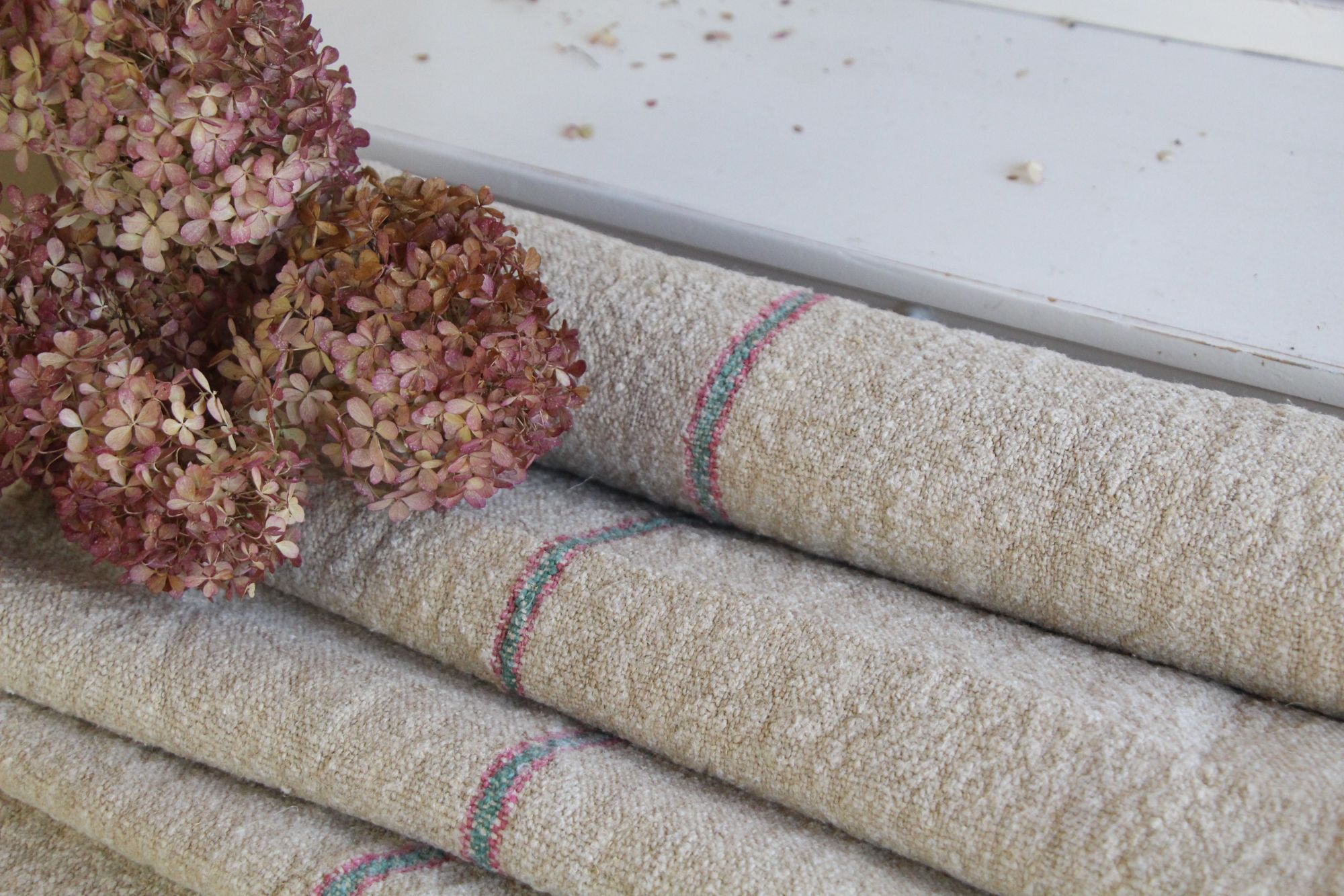 Alle unsere Leinenrollen und Getreidesäcke sind in ihrer Textur und Farbe einzigartig, aber sie alle sind wunderbare Schätze textiler Volkskunst. Sie sind 100 % biologisch und völlig frei von chemischen Substanzen, frisch gewaschen, einwandfrei, sauber und bereit für Ihre kreativen Projekte.