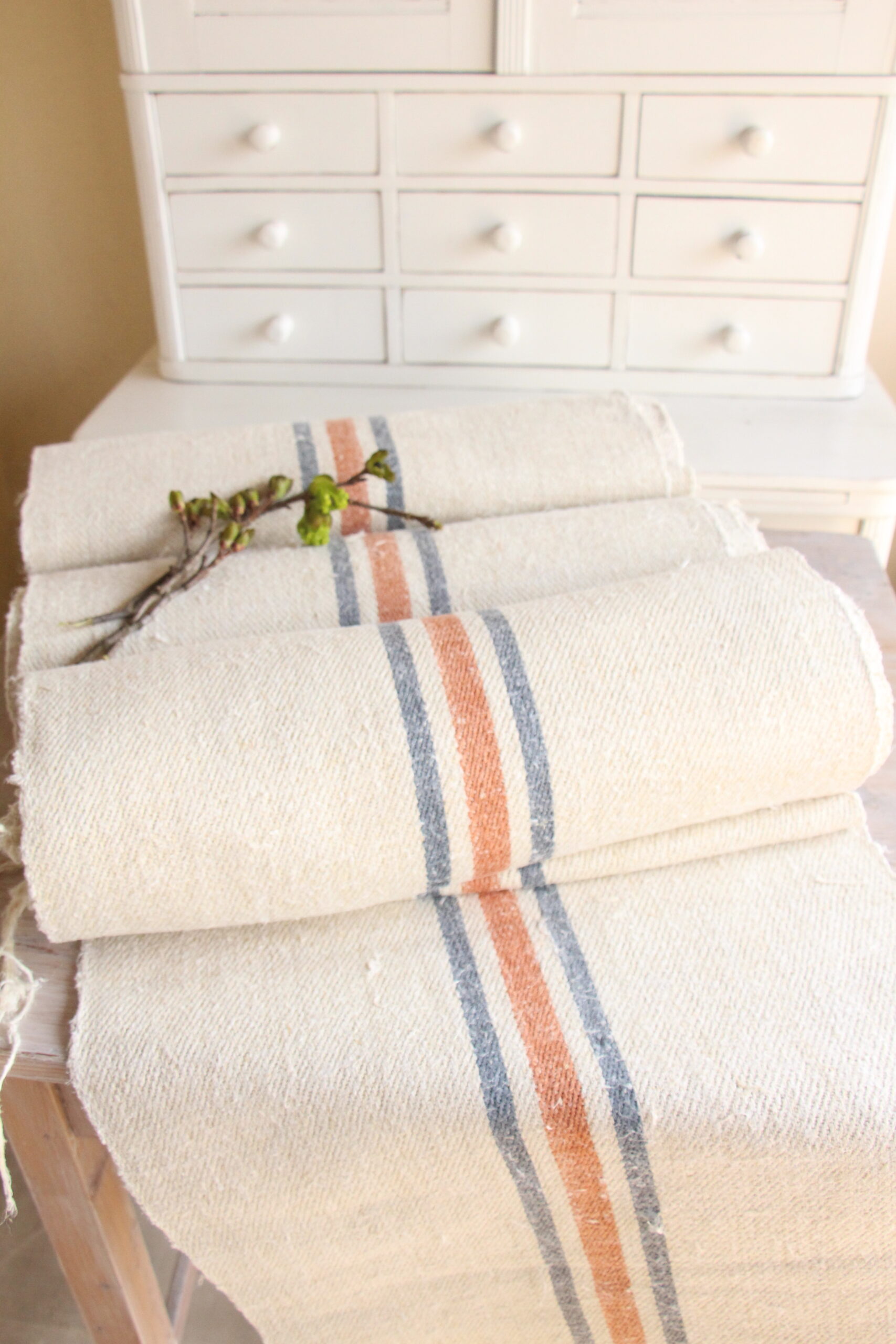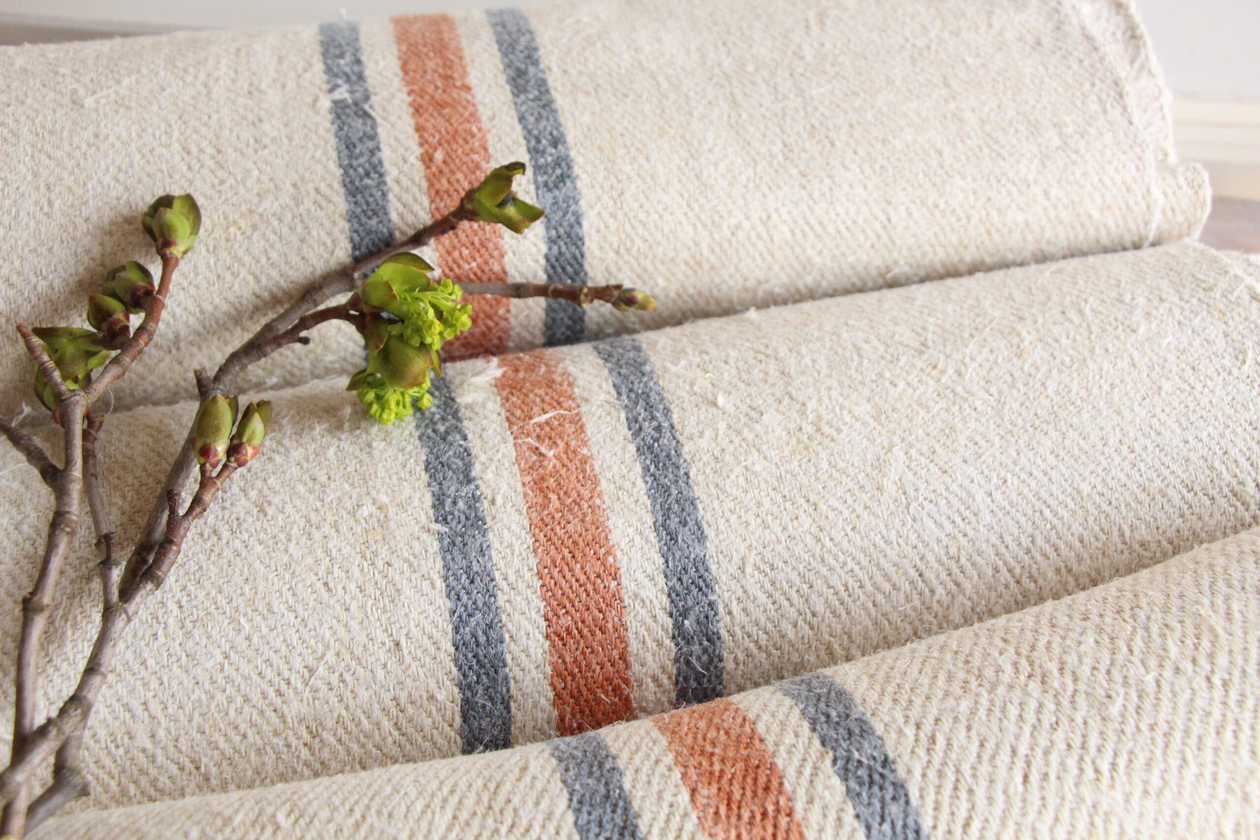 Alle unsere Leinenrollen und Getreidesäcke sind in ihrer Textur und Farbe einzigartig, aber sie alle sind wunderbare Schätze textiler Volkskunst. Sie sind 100 % biologisch und völlig frei von chemischen Substanzen, frisch gewaschen, einwandfrei sauber und bereit für Ihre kreativen Projekte.