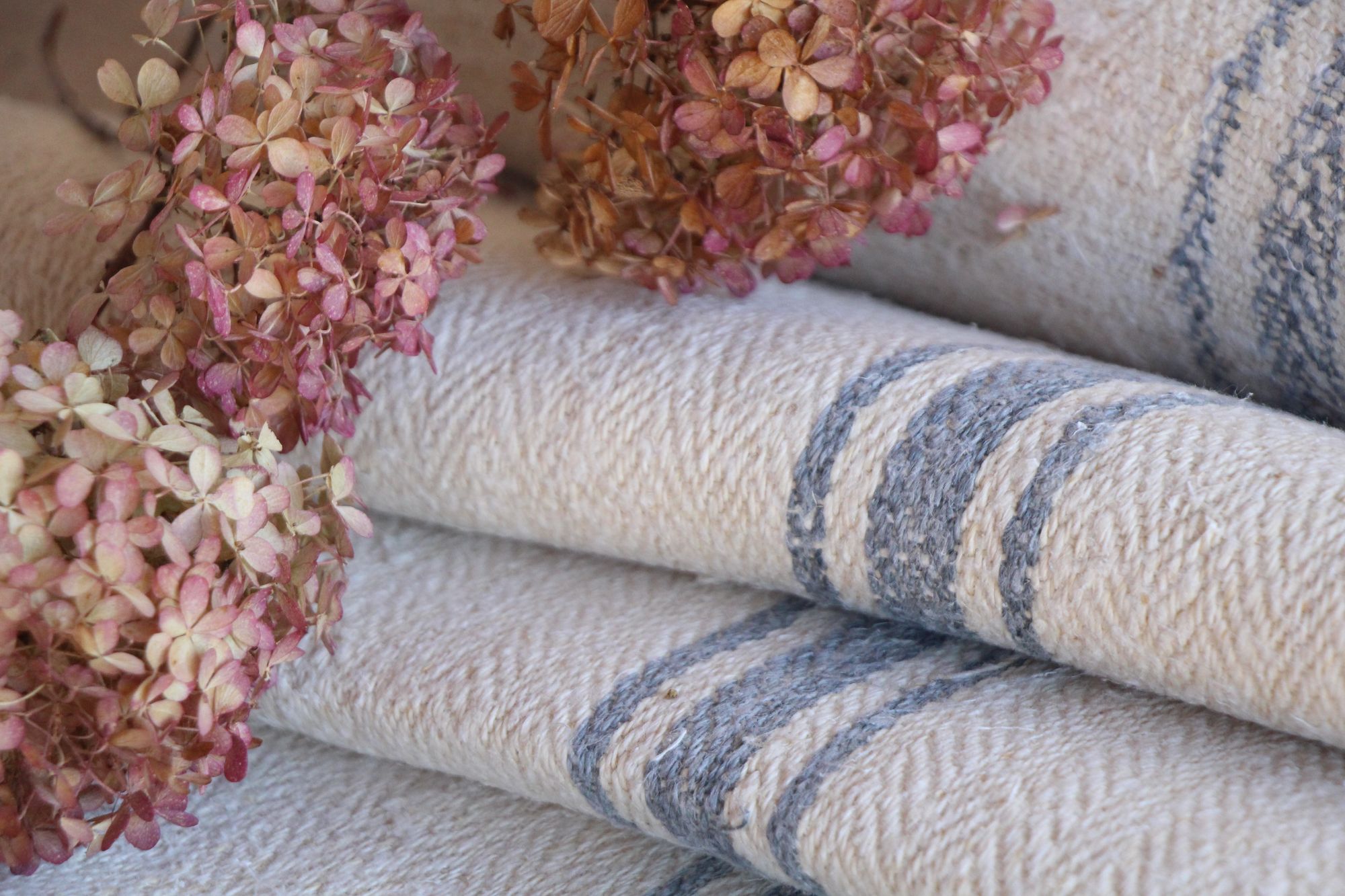 Alle unsere Leinenrollen und Getreidesäcke sind in ihrer Textur und Farbe einzigartig, aber sie alle sind wunderbare Schätze textiler Volkskunst. Sie sind 100 % biologisch und völlig frei von chemischen Substanzen, frisch gewaschen, einwandfrei, sauber und bereit für Ihre kreativen Projekte.