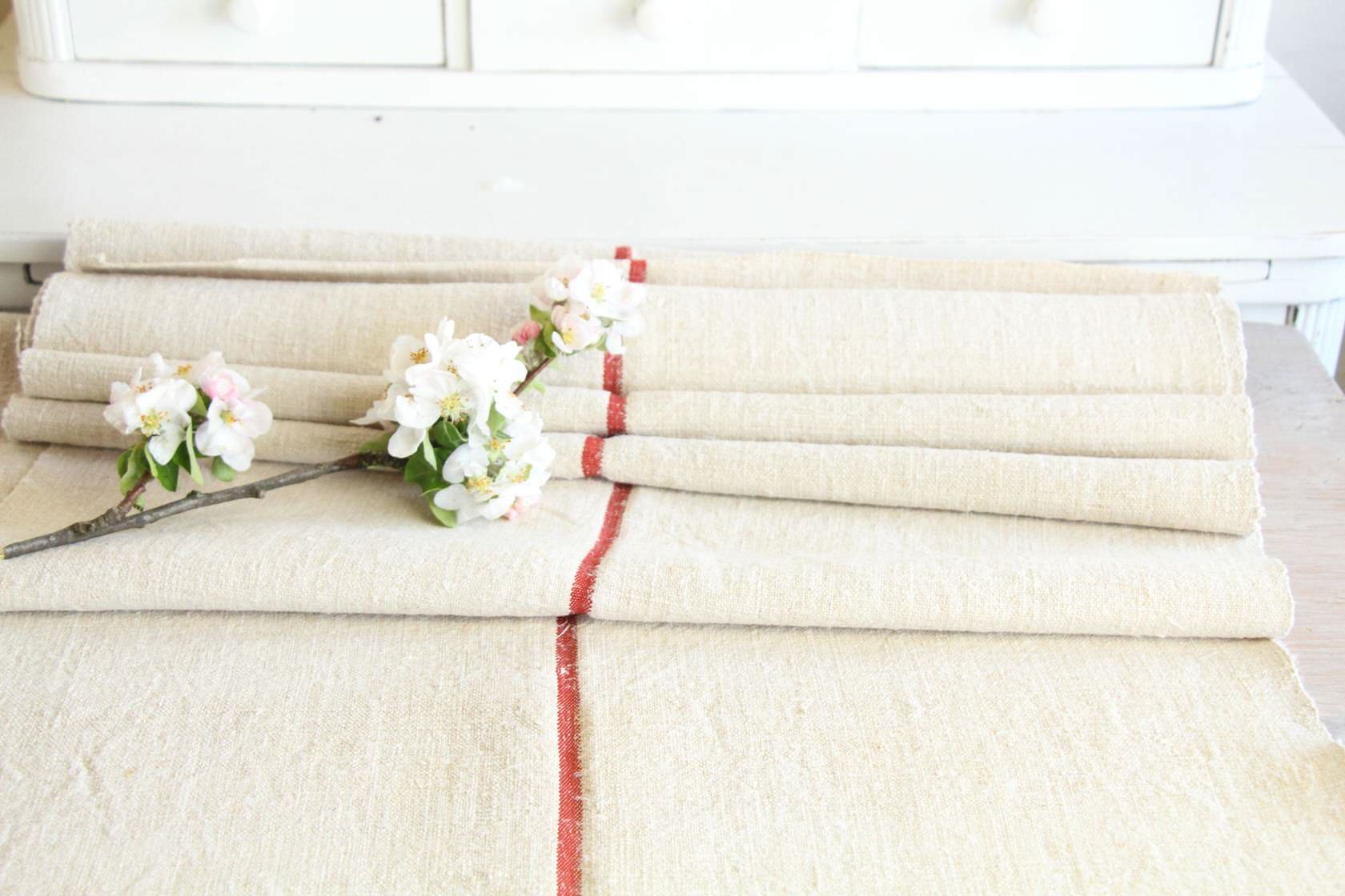 It ́s just ADORABLE, it has a beautiful RUSTY RED STRIPES, the linen itself IS NATURAL CREAMY,