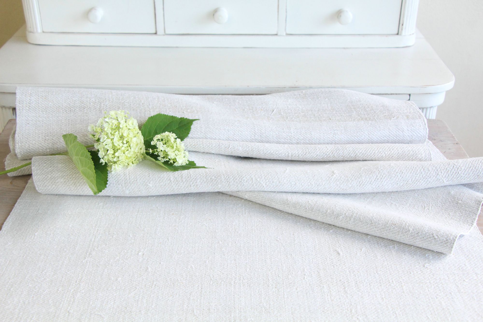 Stoff: 100 % biologisches und organisches antikes Leinen, etwa 100 Jahre alt und in ausgezeichnetem Zustand