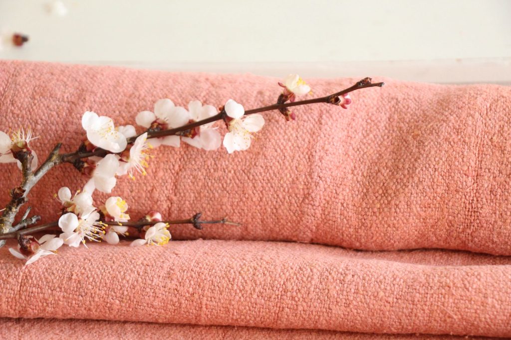 Wir haben das Leinensorgfältig mit der unglaublichsten LACHSFARBE gefärbt, was für ein Schatz!