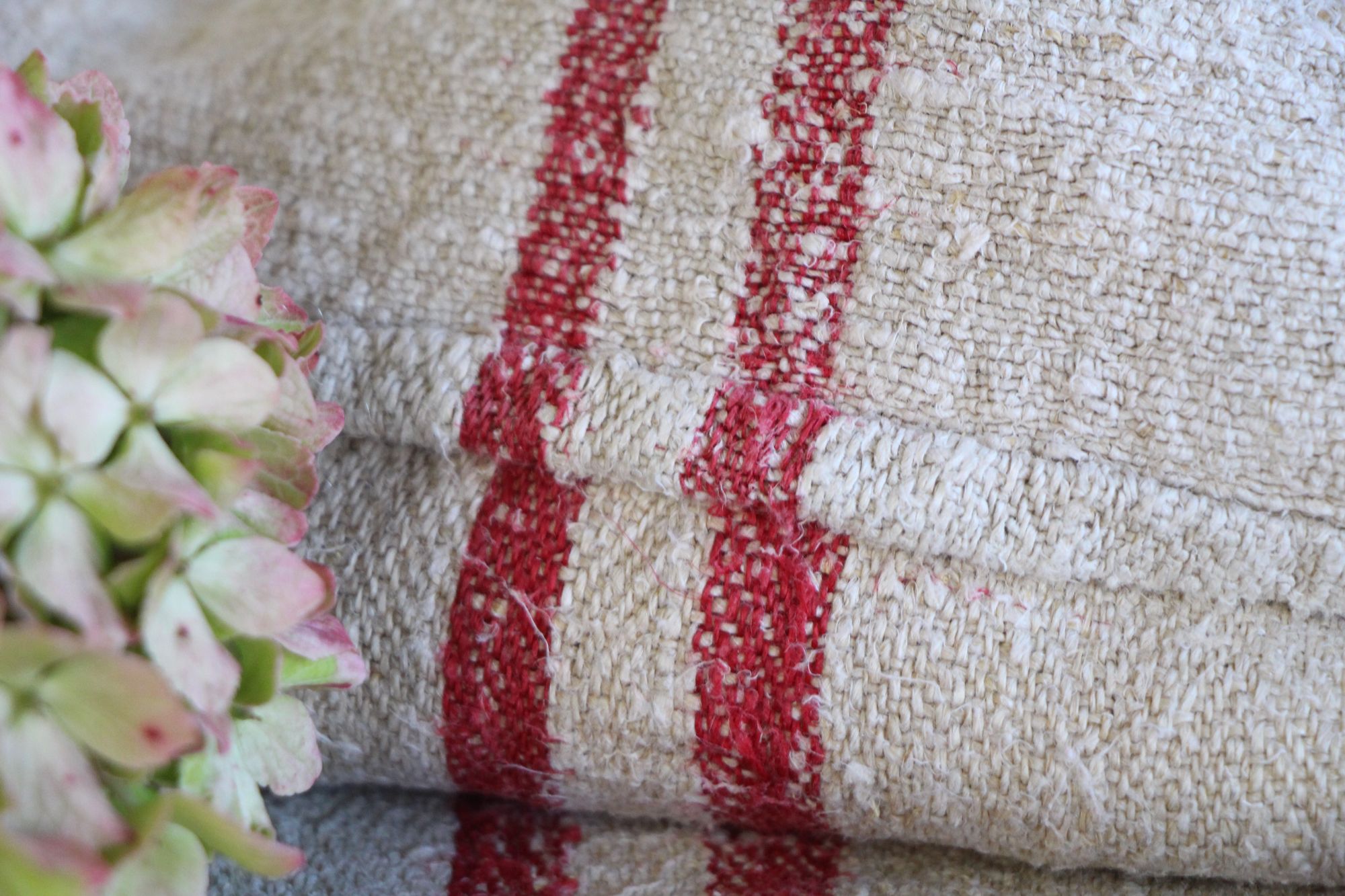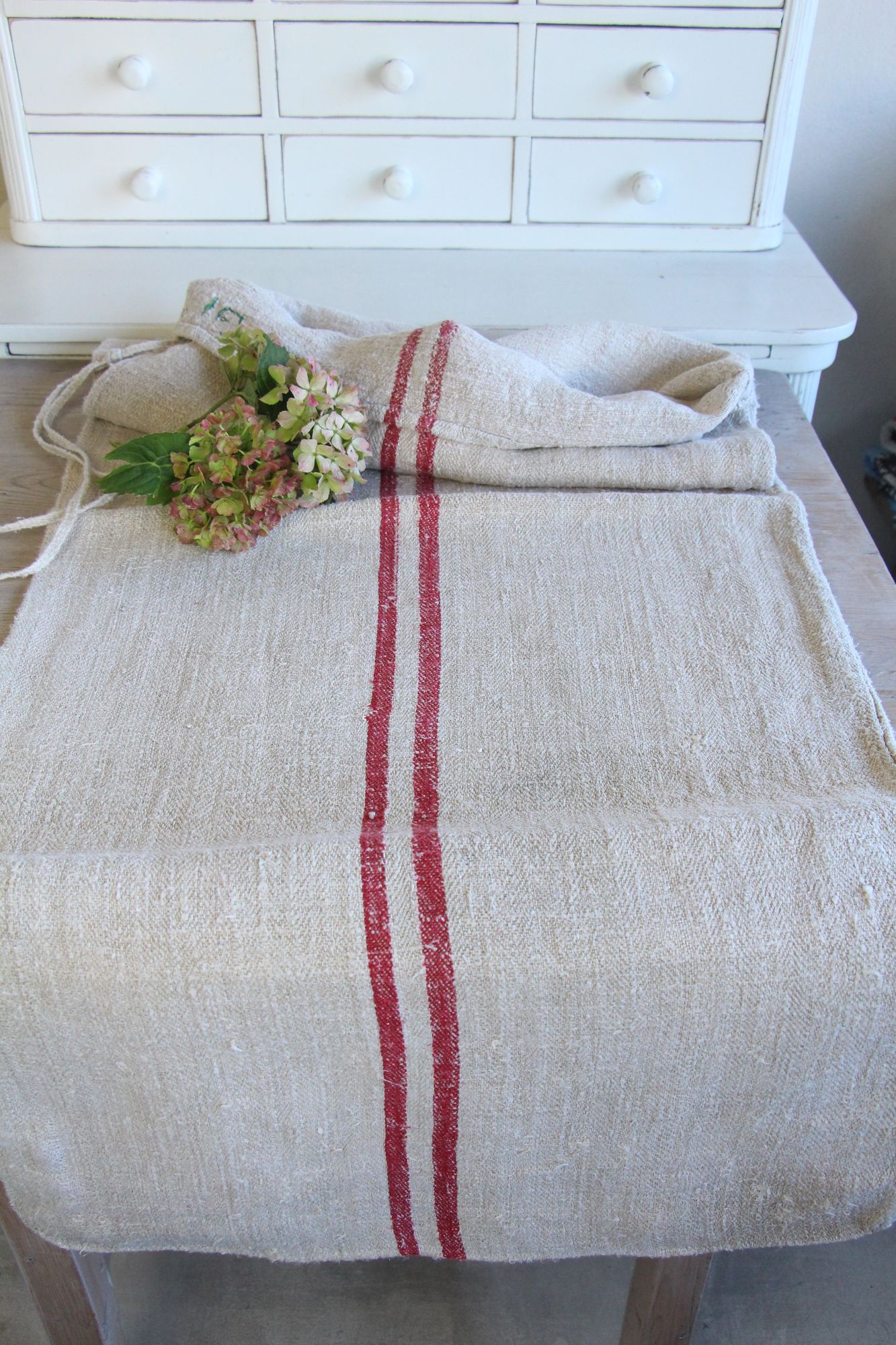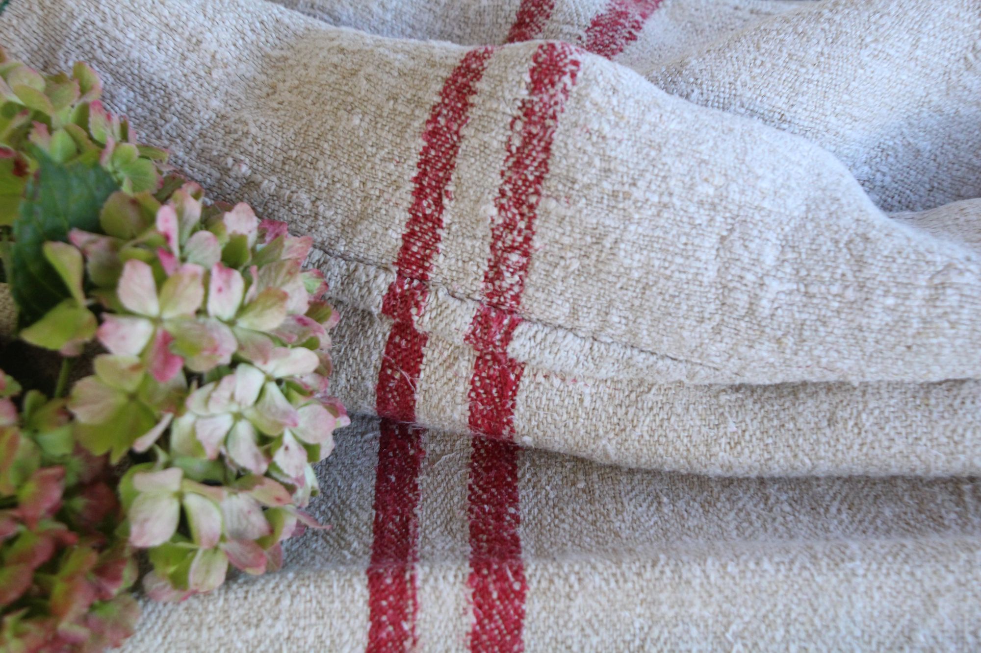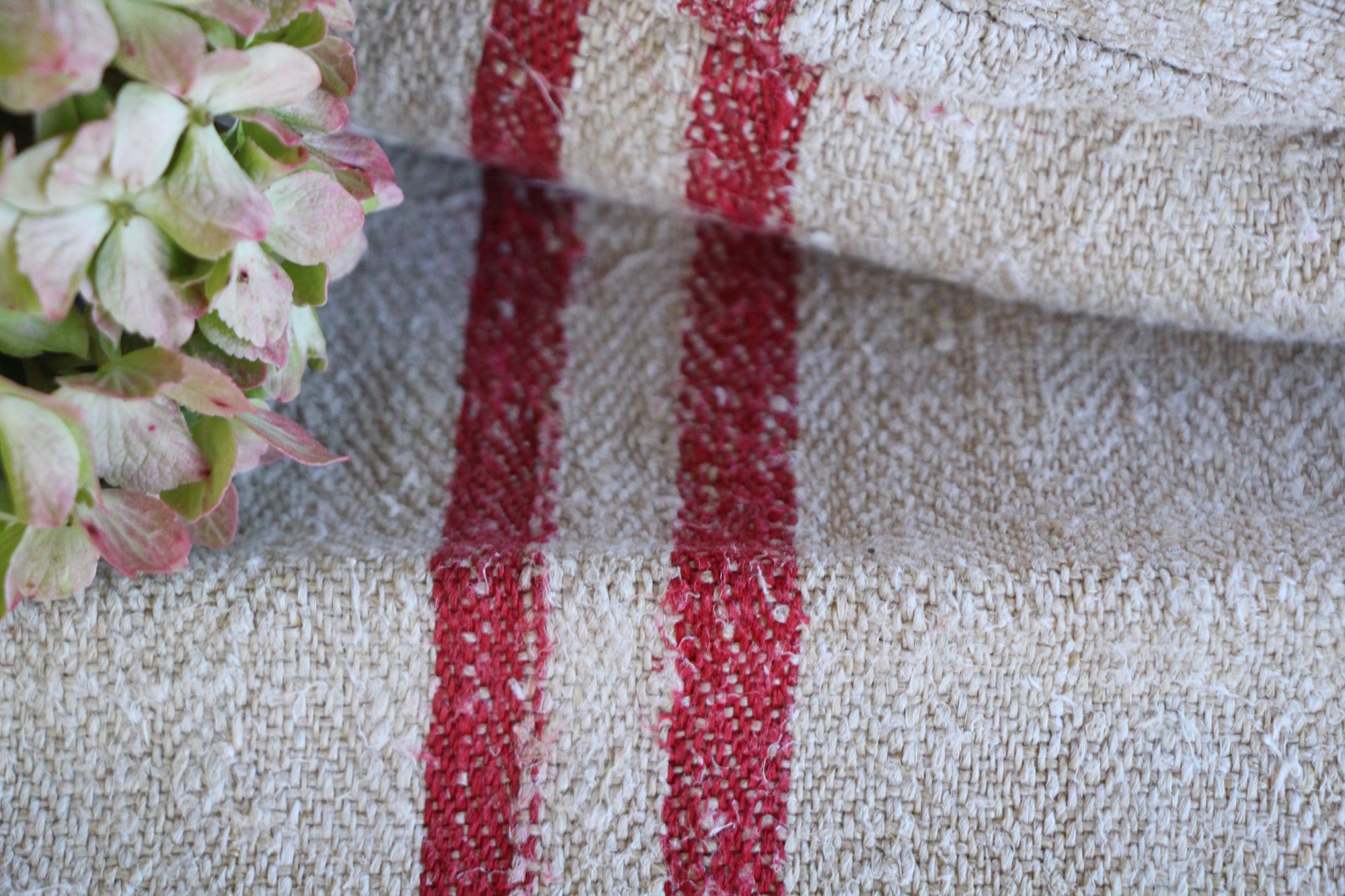Alle unsere Leinenrollen und Getreidesäcke sind in ihrer Textur und Farbe einzigartig, aber sie alle sind wunderbare Schätze textiler Volkskunst. Sie sind 100 % biouf dem Bild zu sehen sind.logisch und völlig frei von chemischen Substanzen, frisch gewaschen, einwandfrei sauber und bereit für Ihre kreativen Projekte.