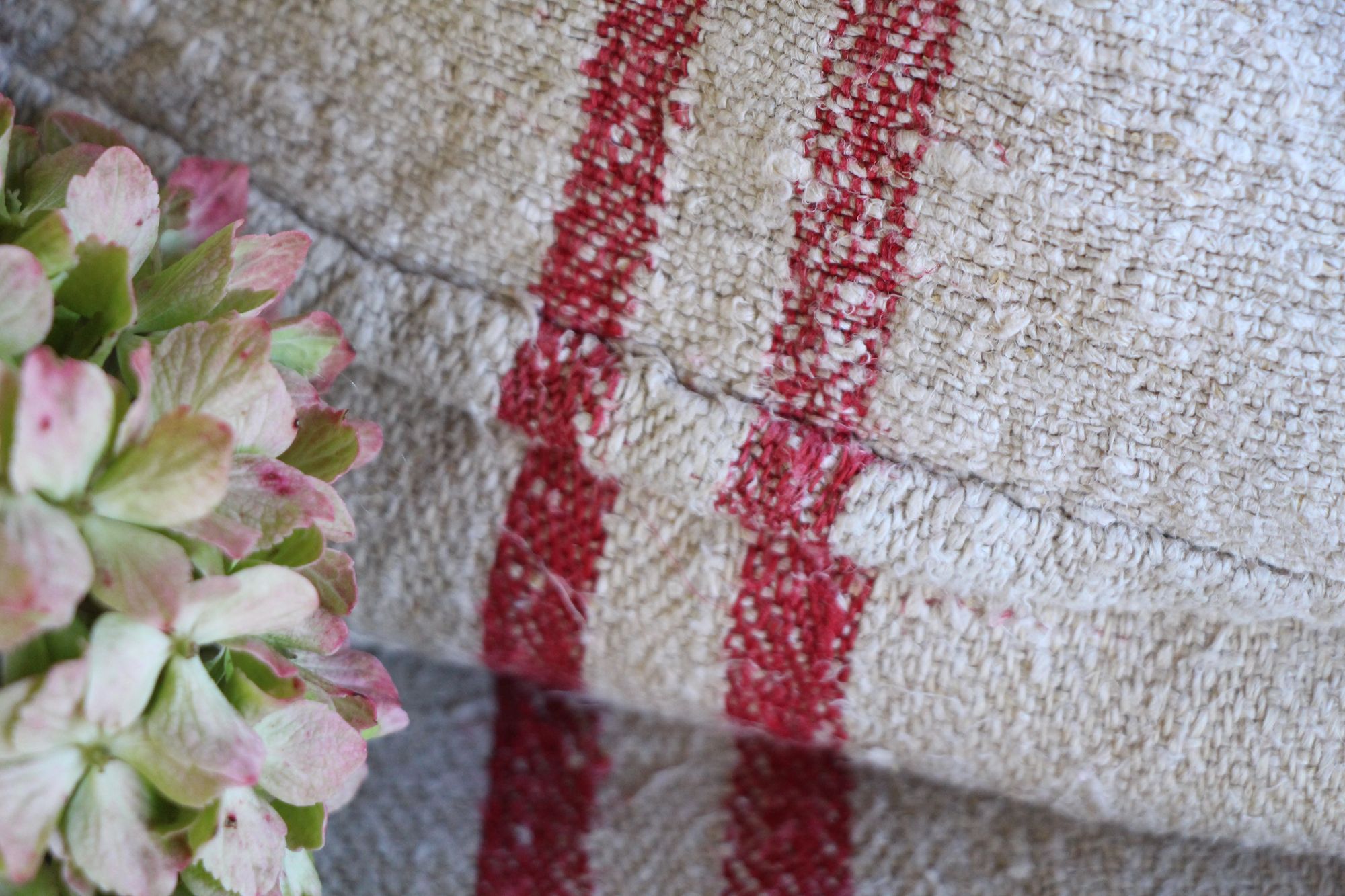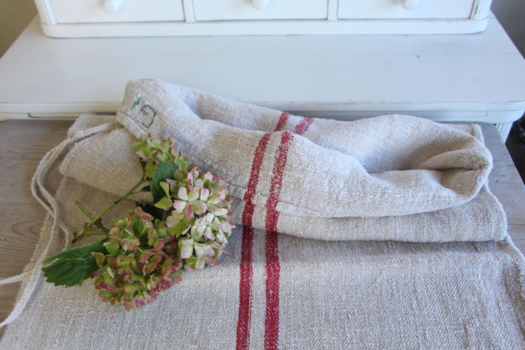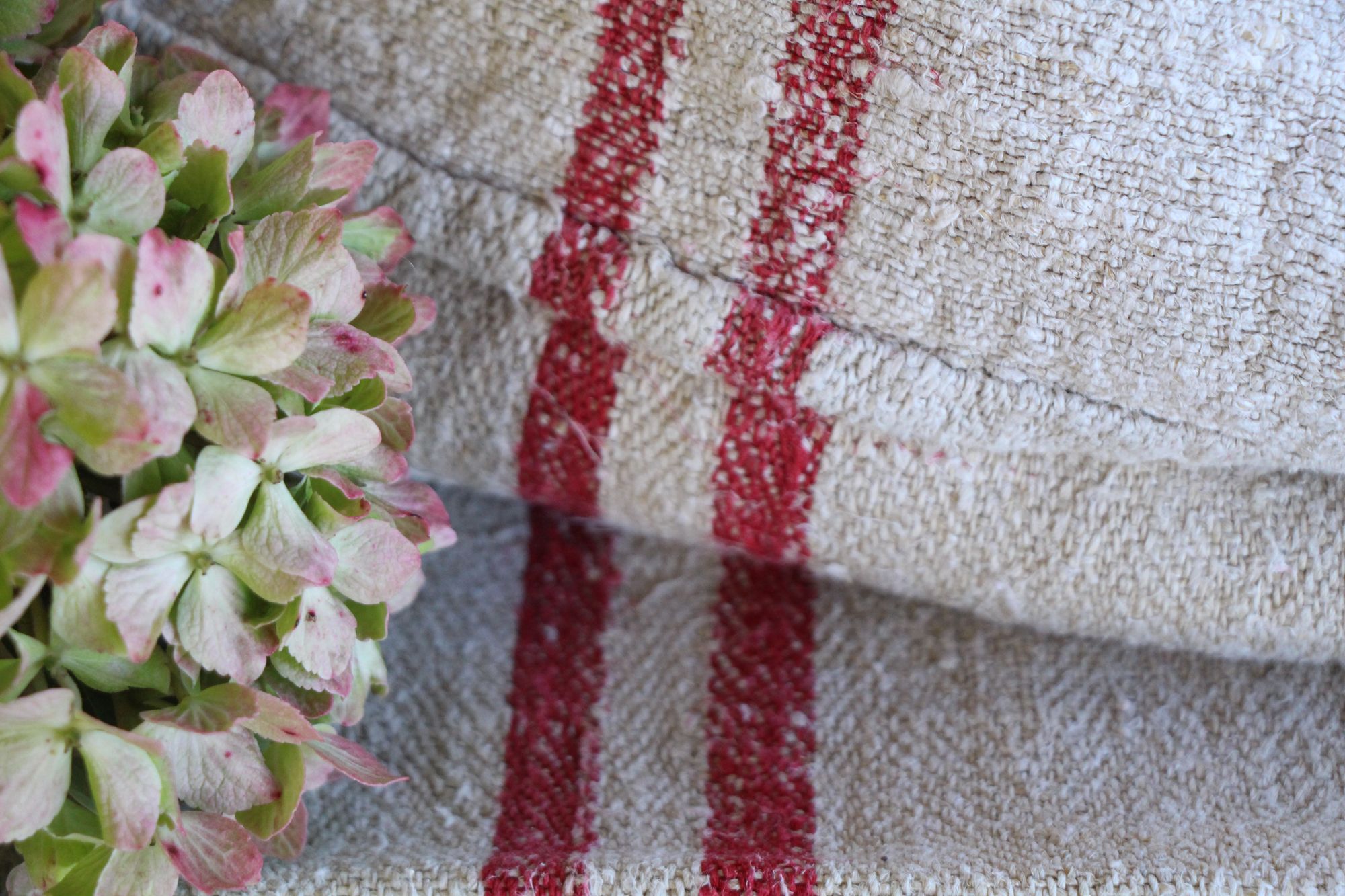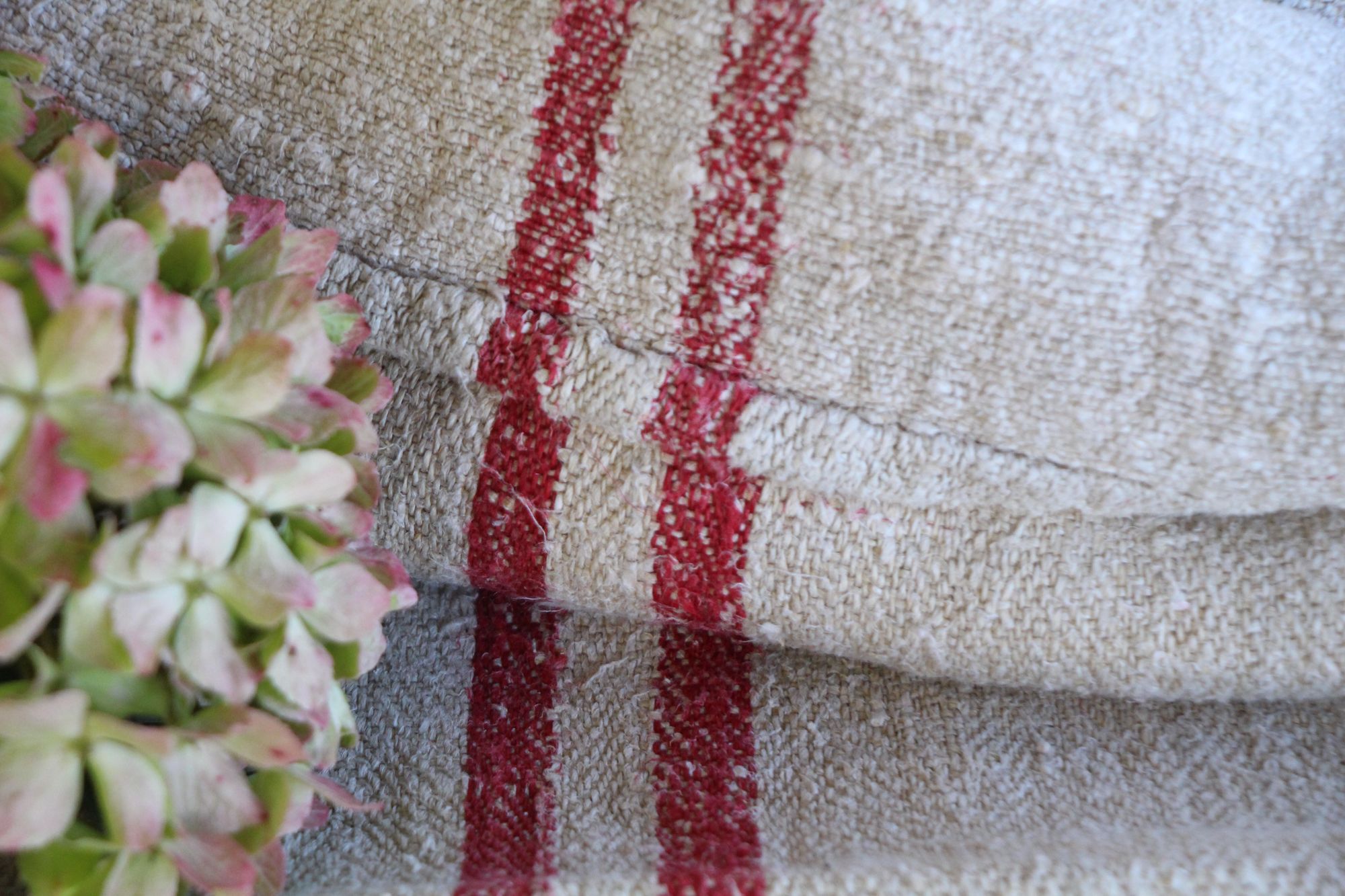 Alle unsere Leinenrollen und Getreidesäcke sind in ihrer Textur und Farbe einzigartig, aber sie alle sind wunderbare Schätze textiler Volkskunst. Sie sind 100 % biouf dem Bild zu sehen sind.logisch und völlig frei von chemischen Substanzen, frisch gewaschen, einwandfrei sauber und bereit für Ihre kreativen Projekte.