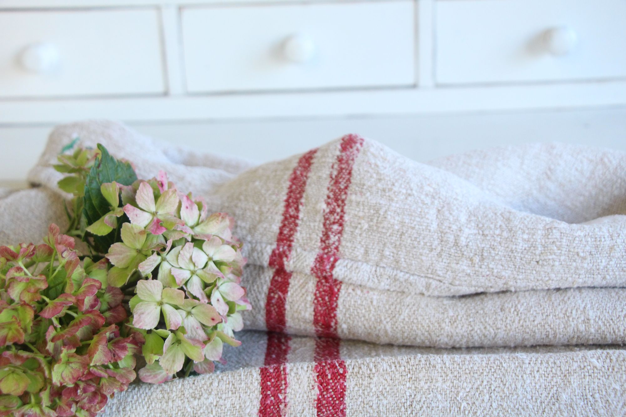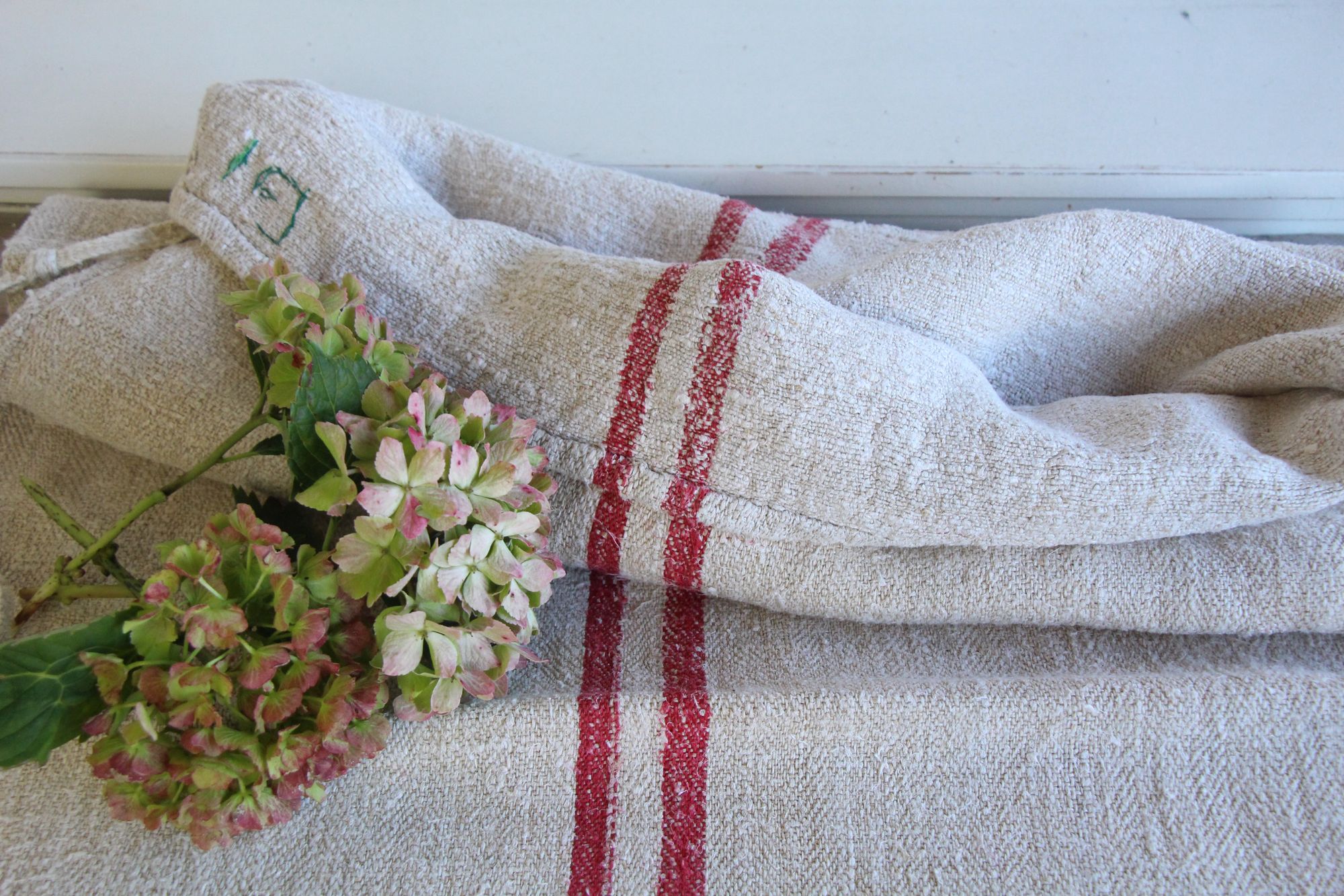 Stoff: 100 % biologisches und organisches antikes Leinen, etwa 100 Jahre alt und in ausgezeichnetem Zustand