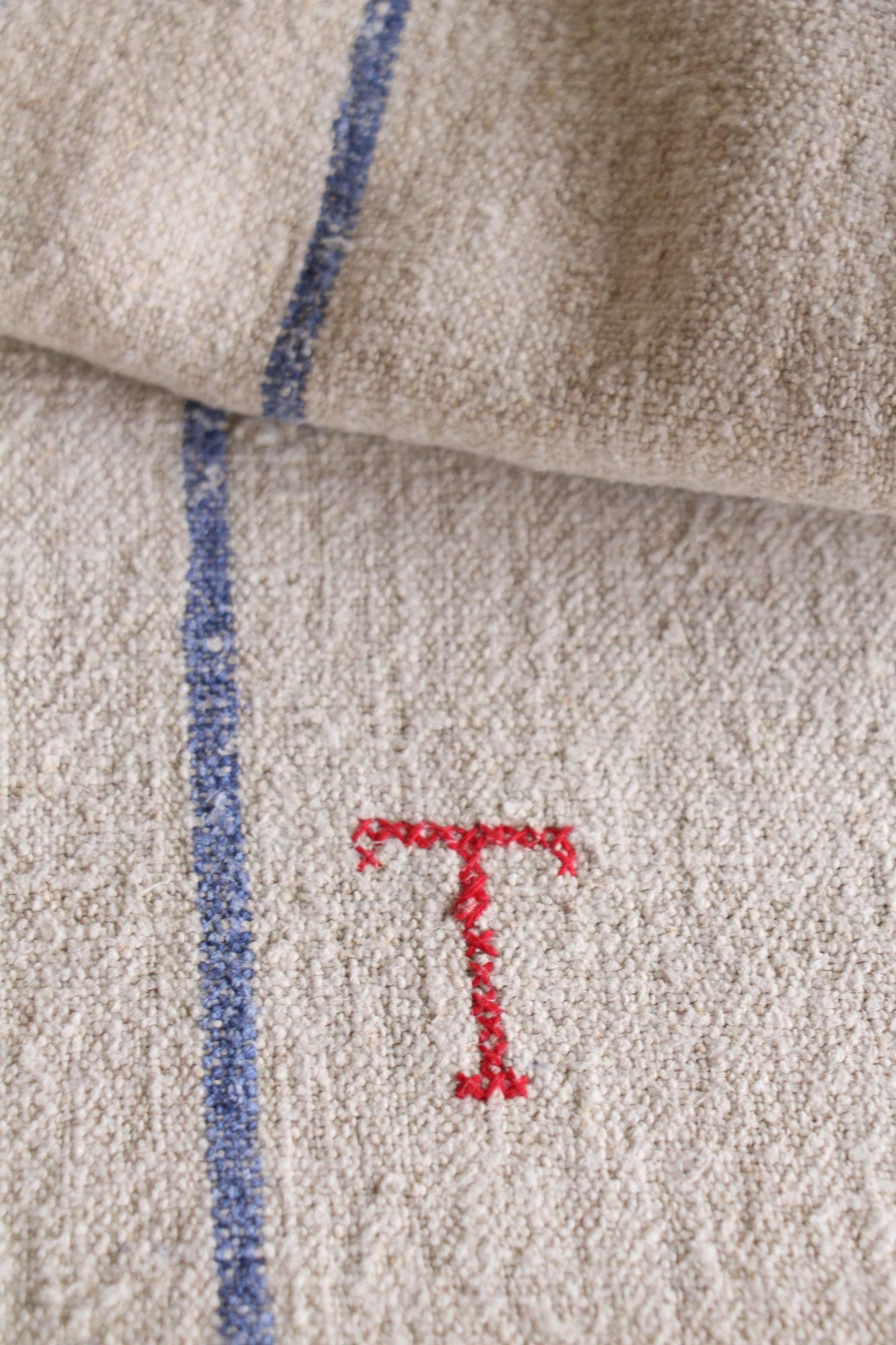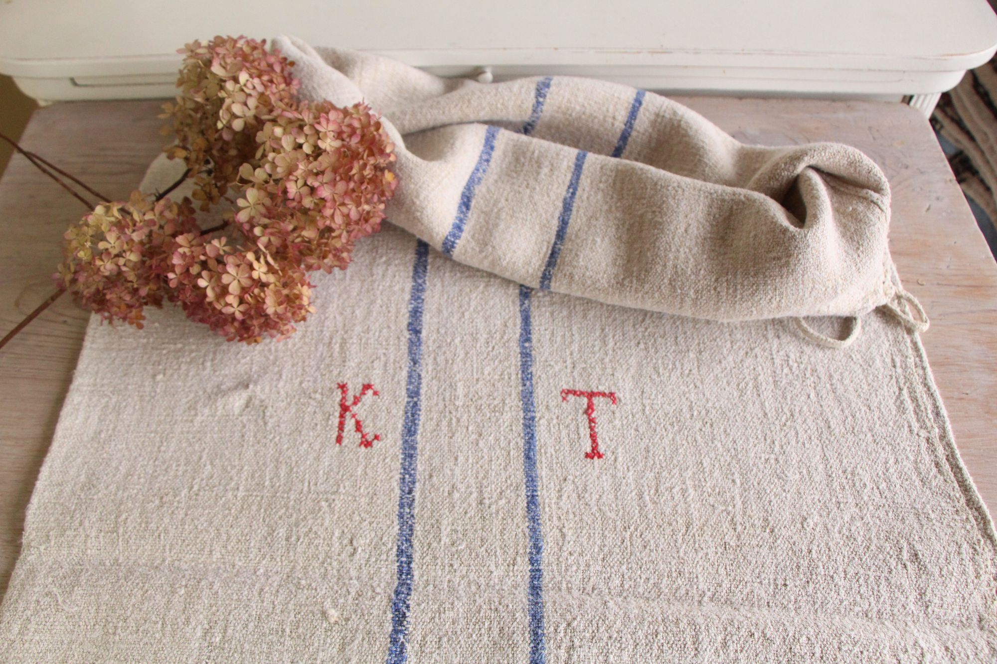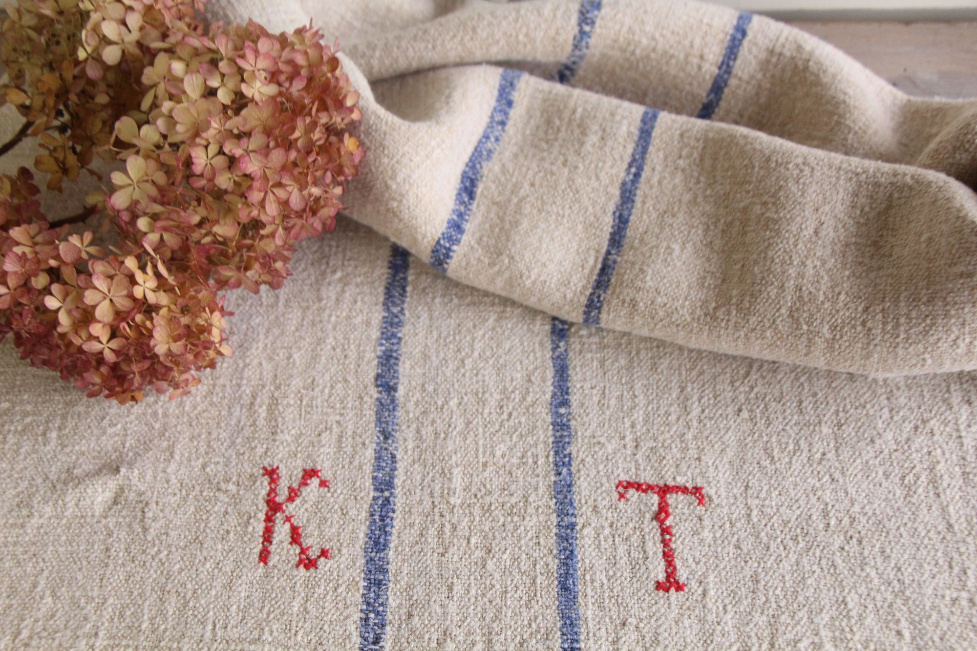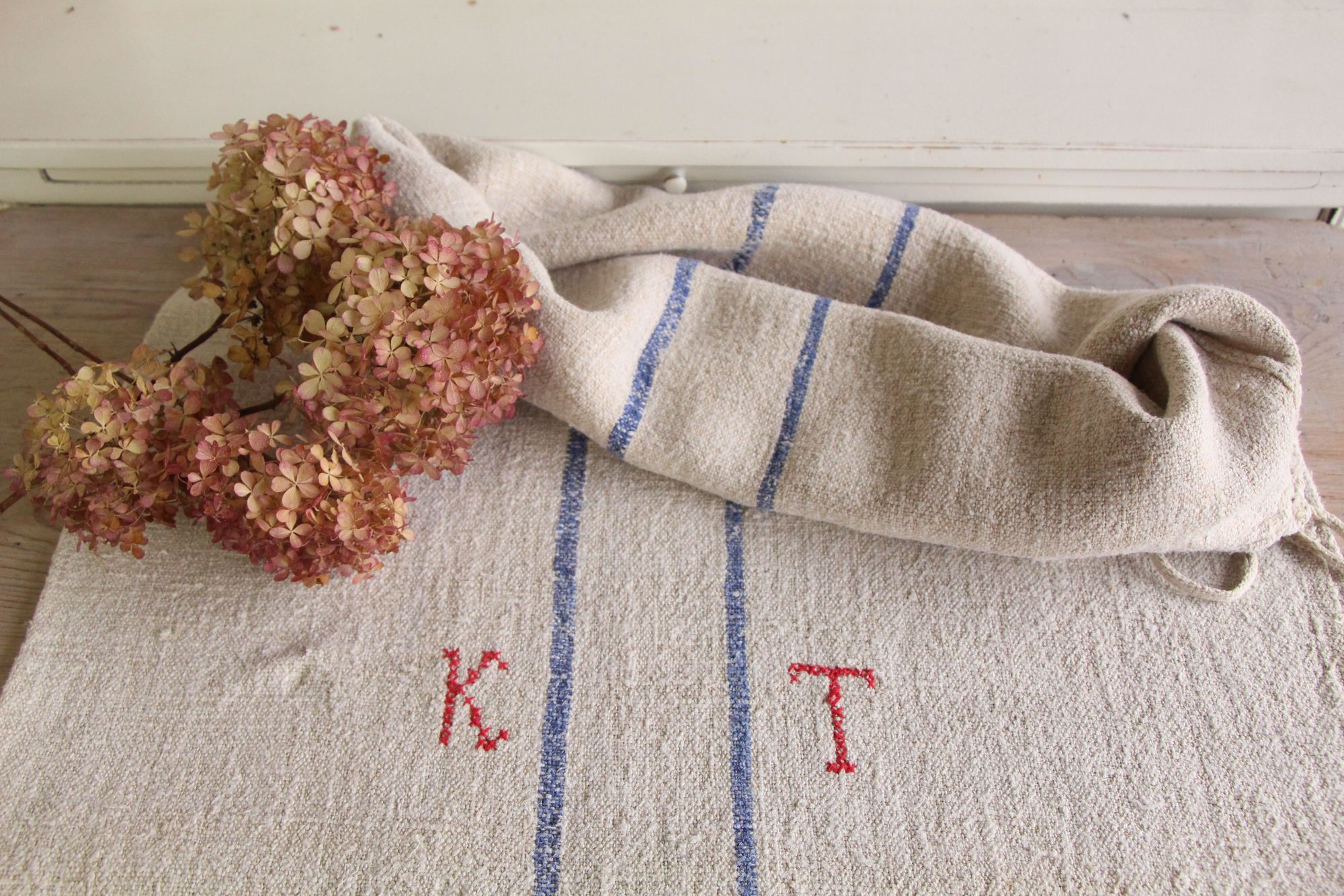 Besonderheit: Der Getreidesack hat ein charmantes rotes, handgenähtes Monogramm K T.