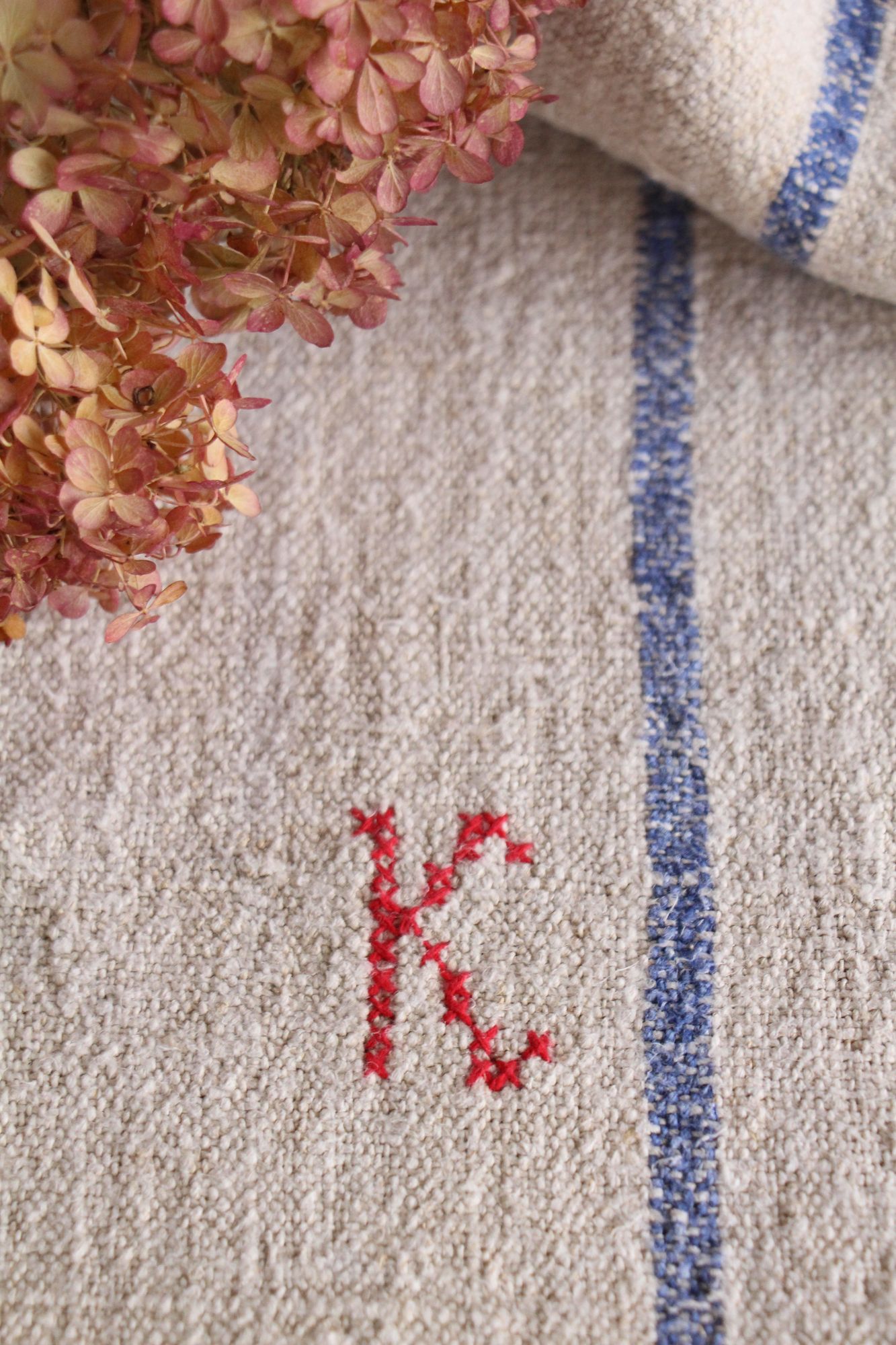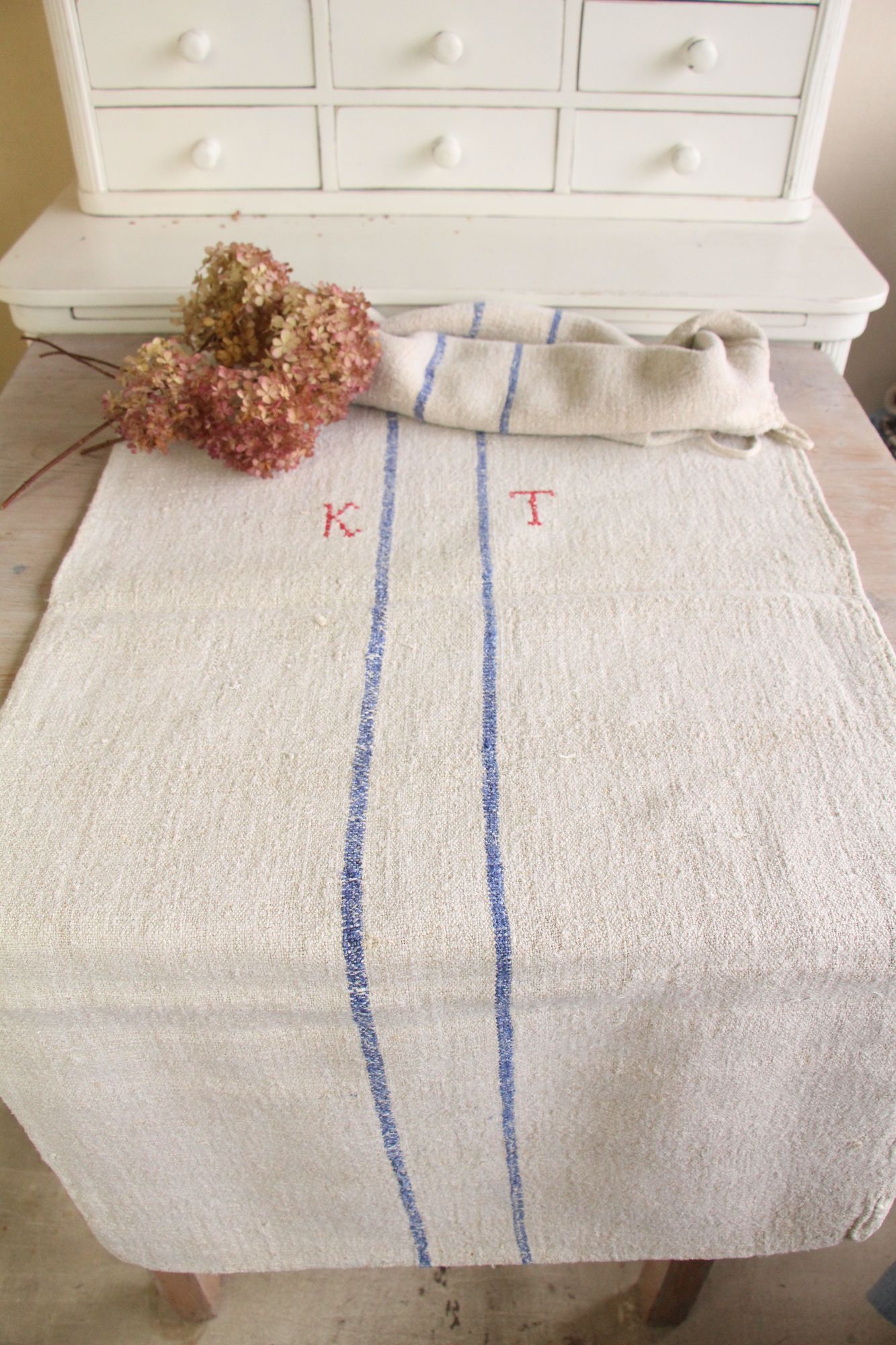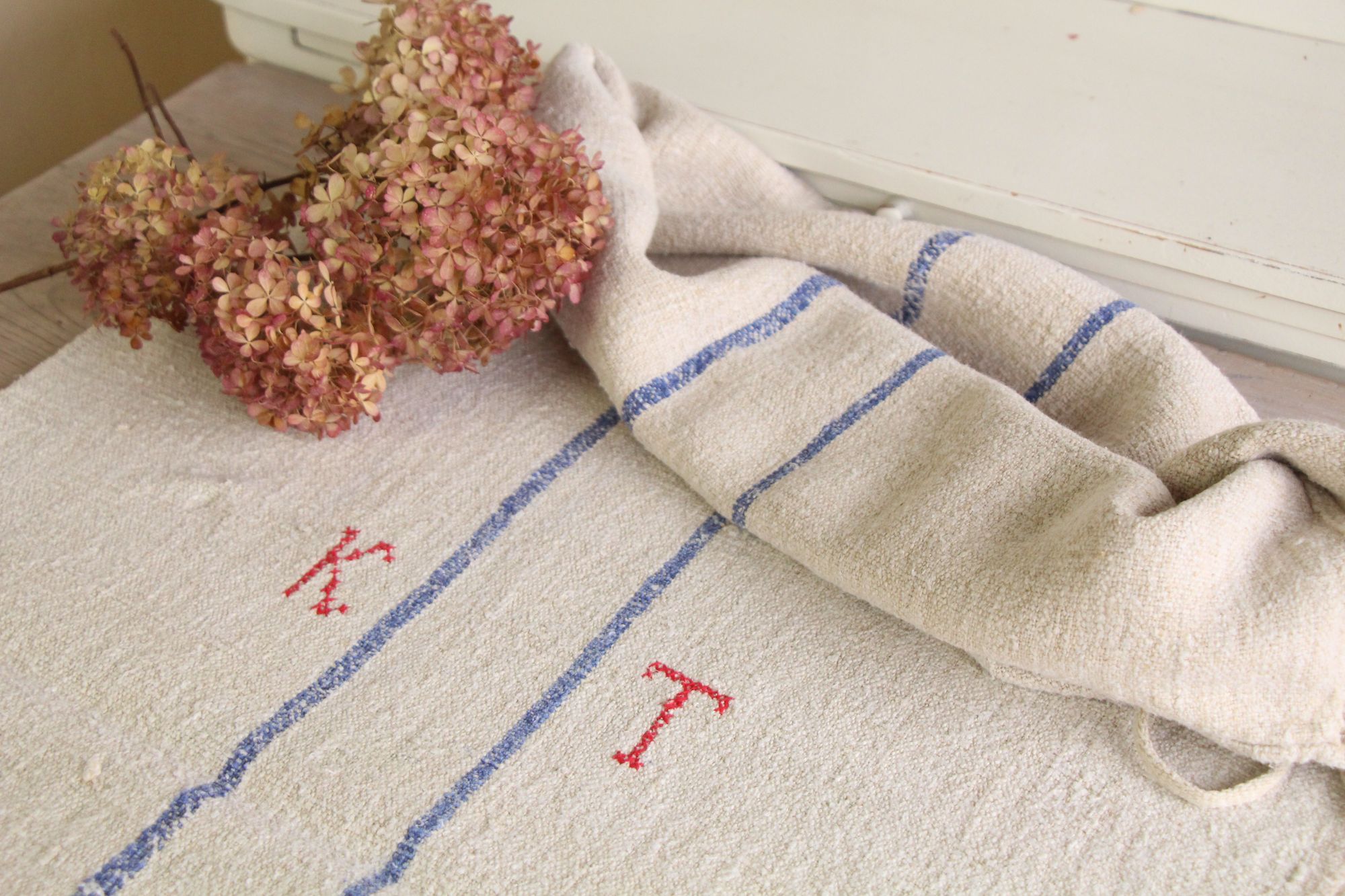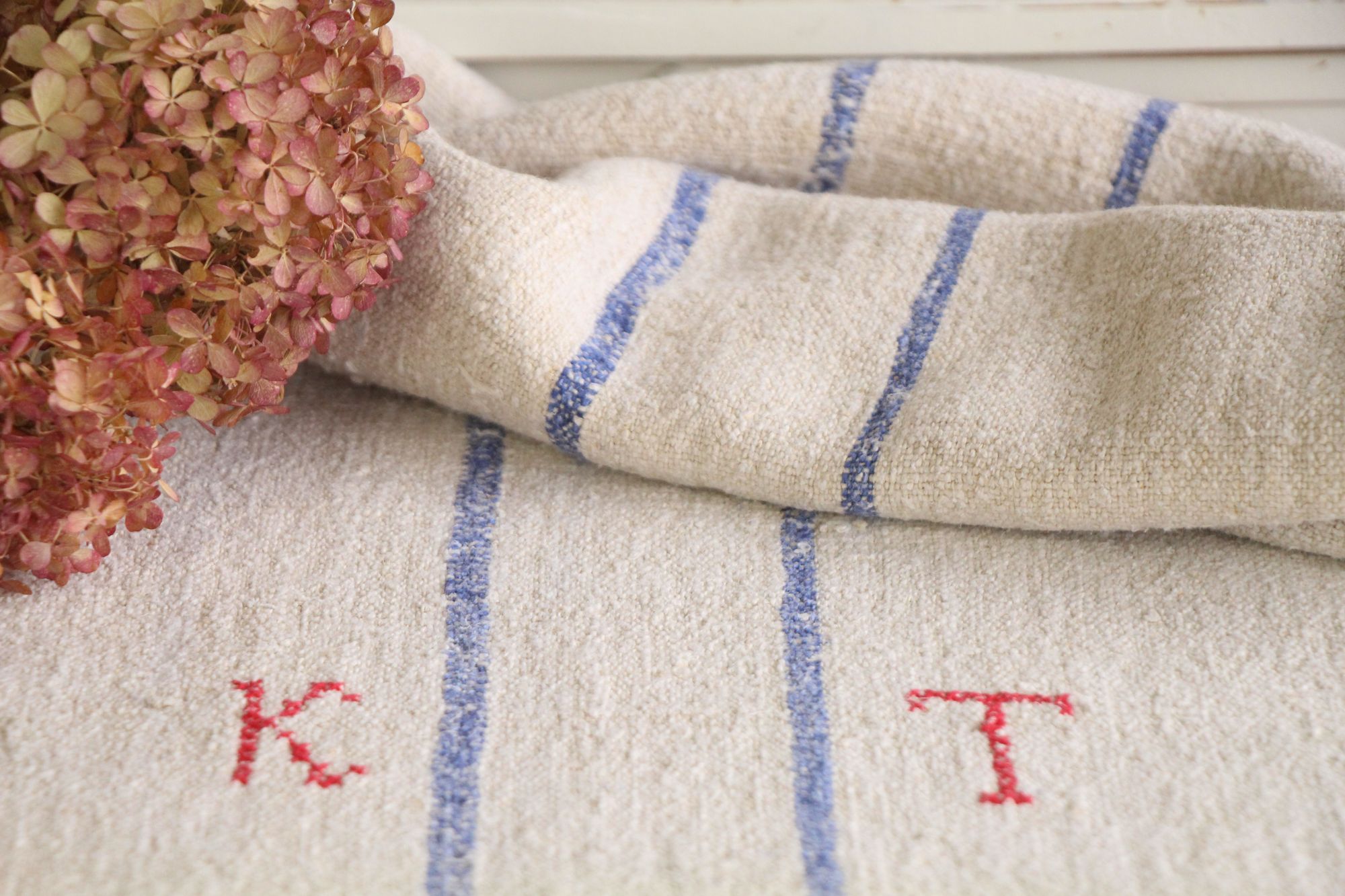 Besonderheit: Der Getreidesack hat ein charmantes rotes, handgenähtes Monogramm K T.