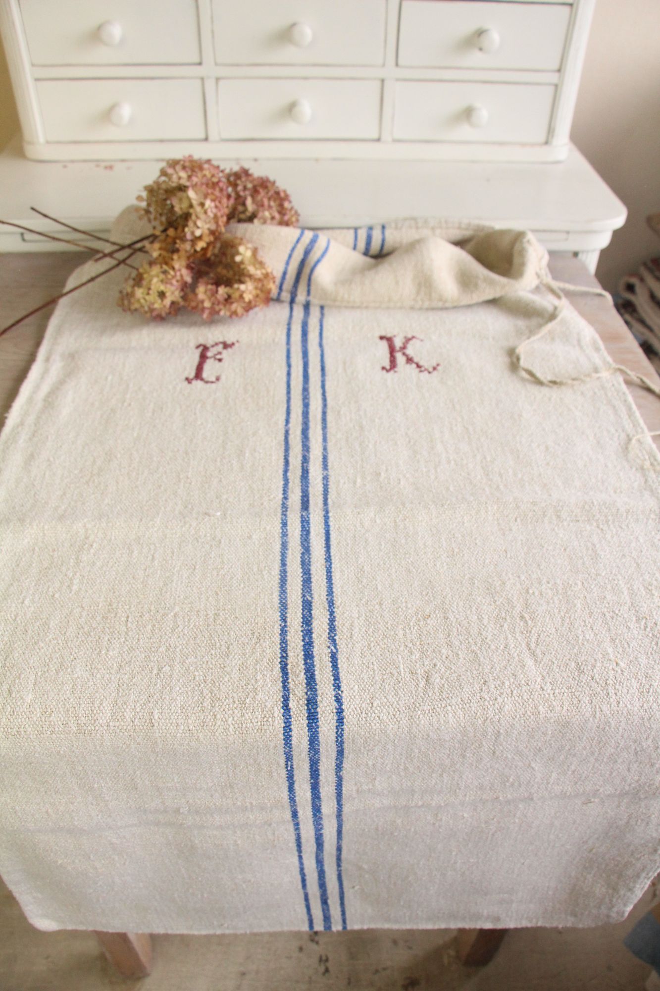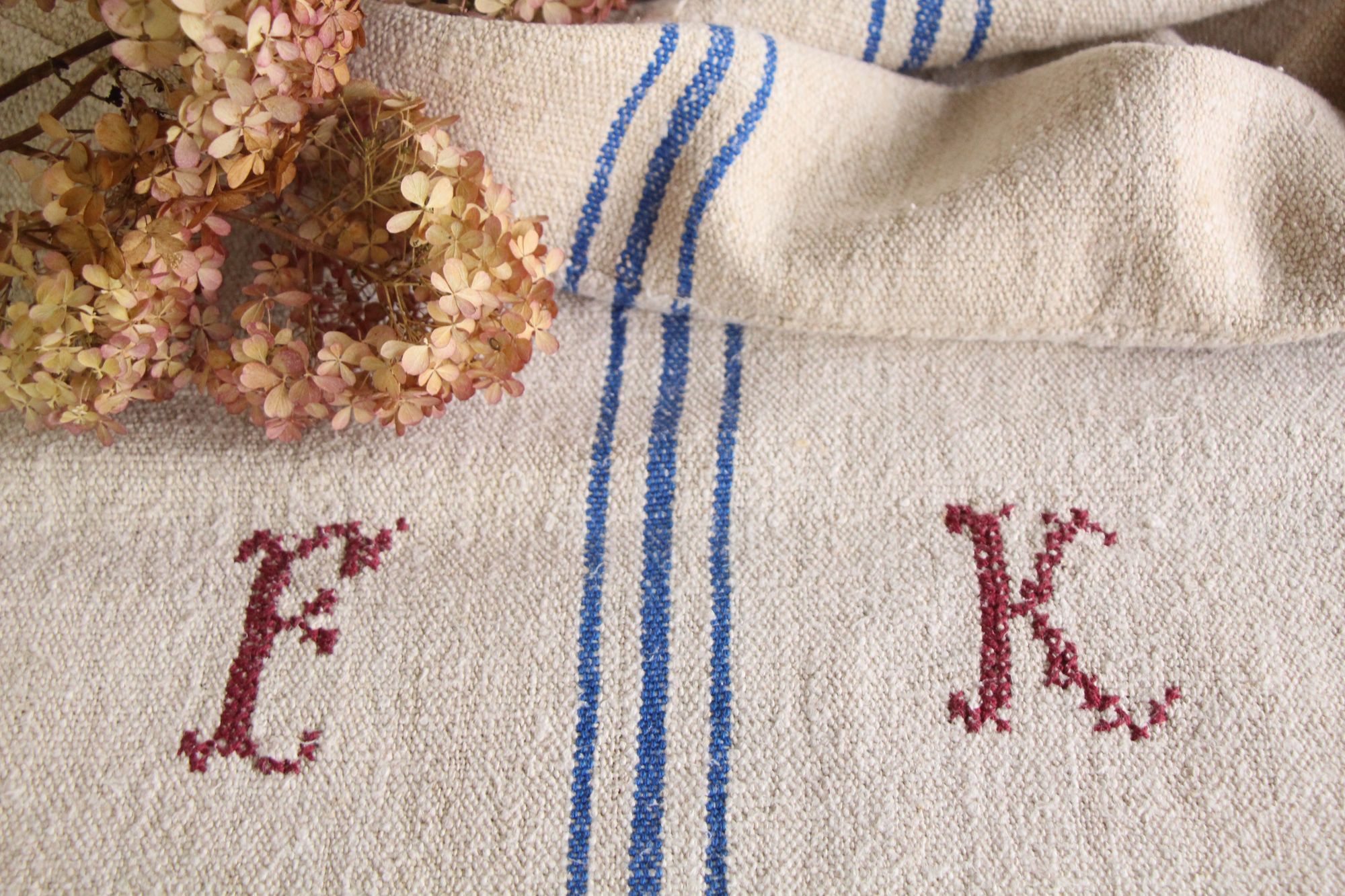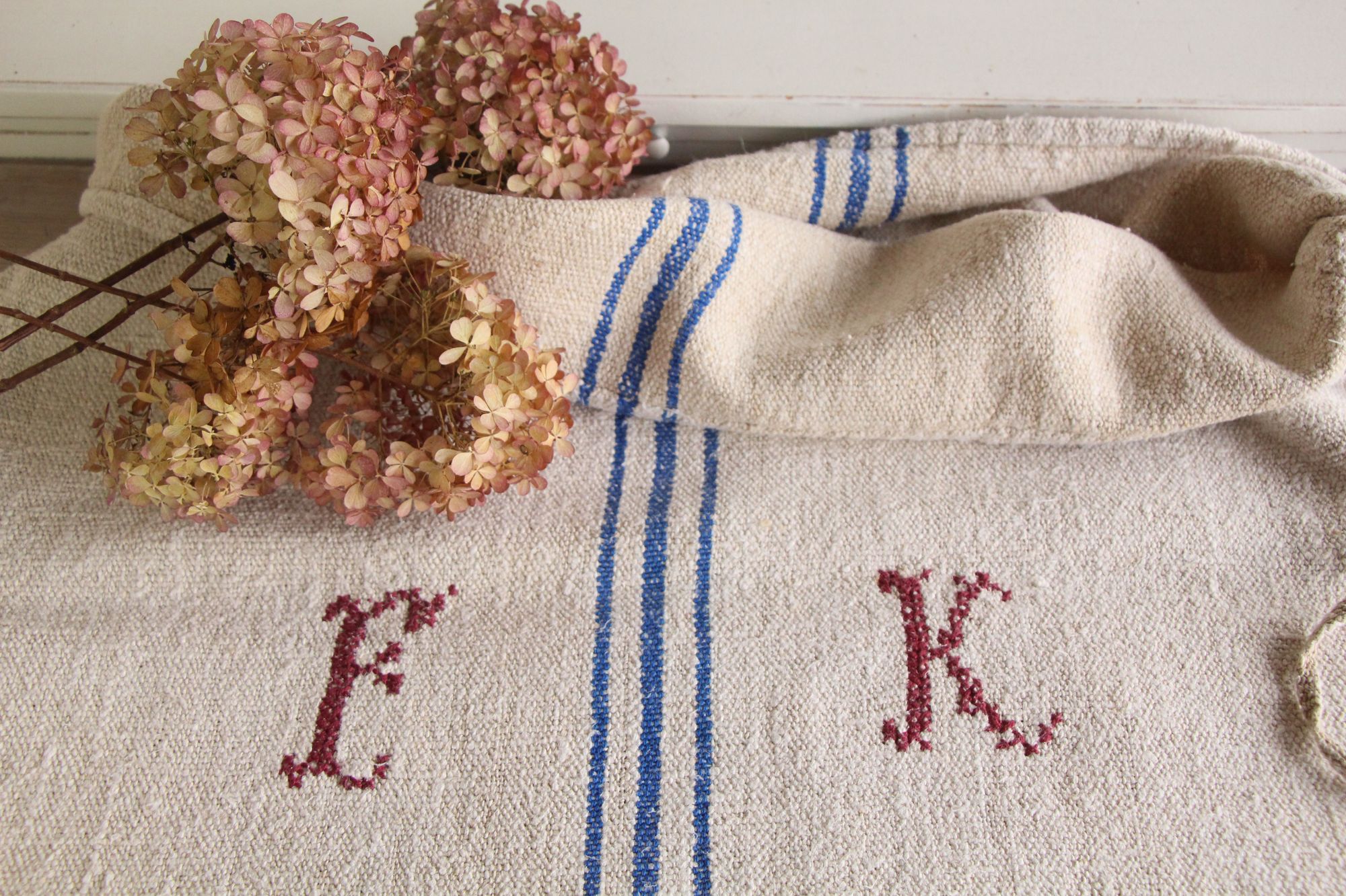 Besonderheit: Der Getreidesack hat ein charmantes rotes, handgenähtes Monogramm F K.