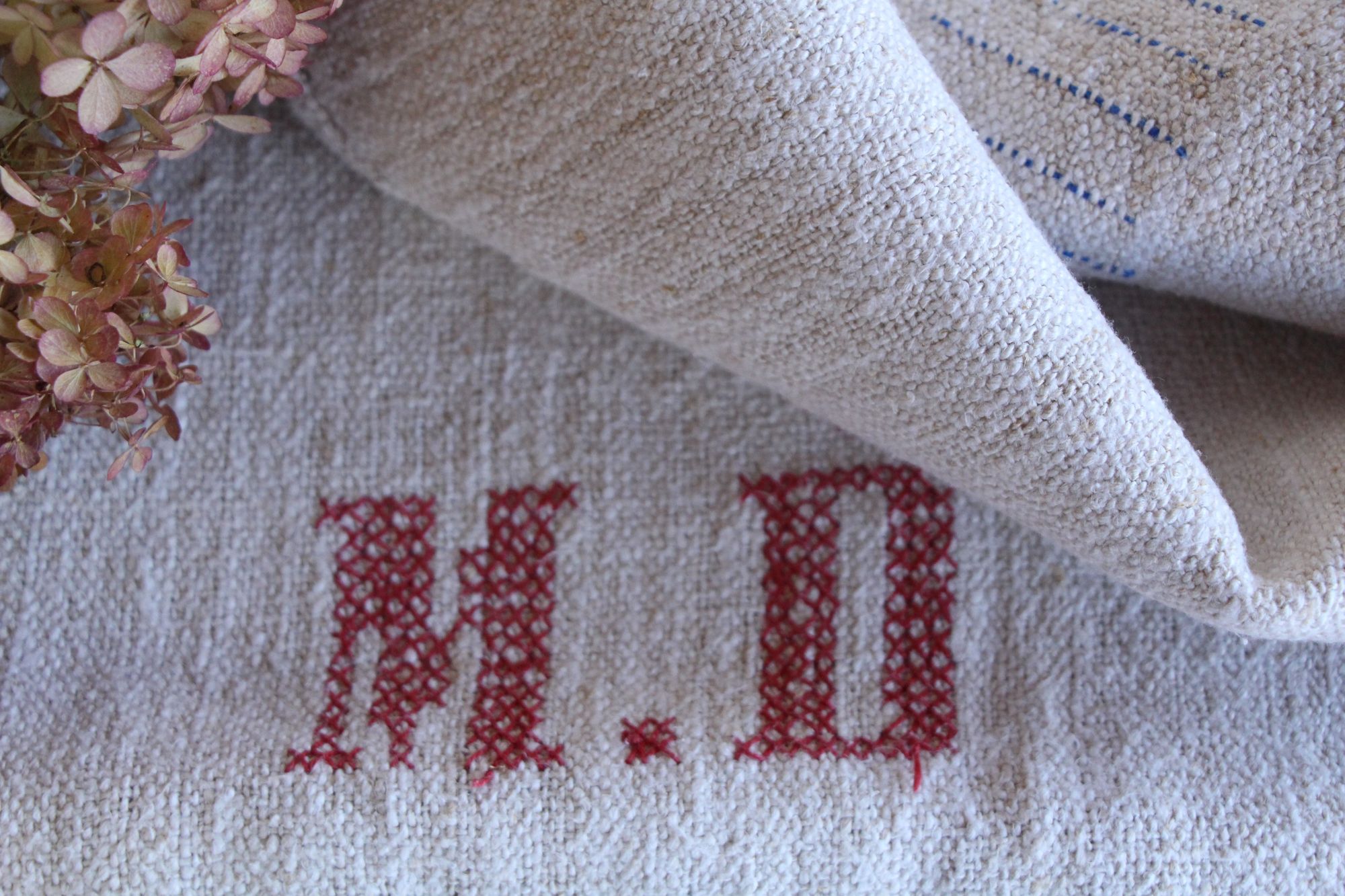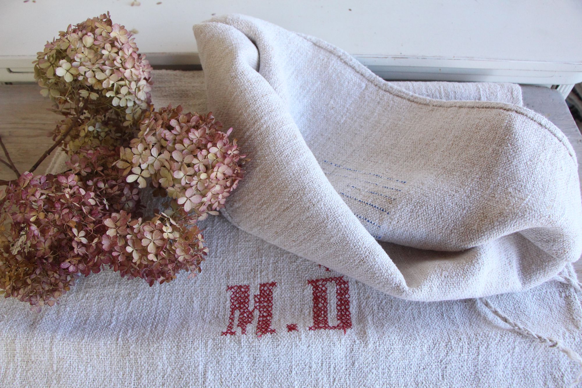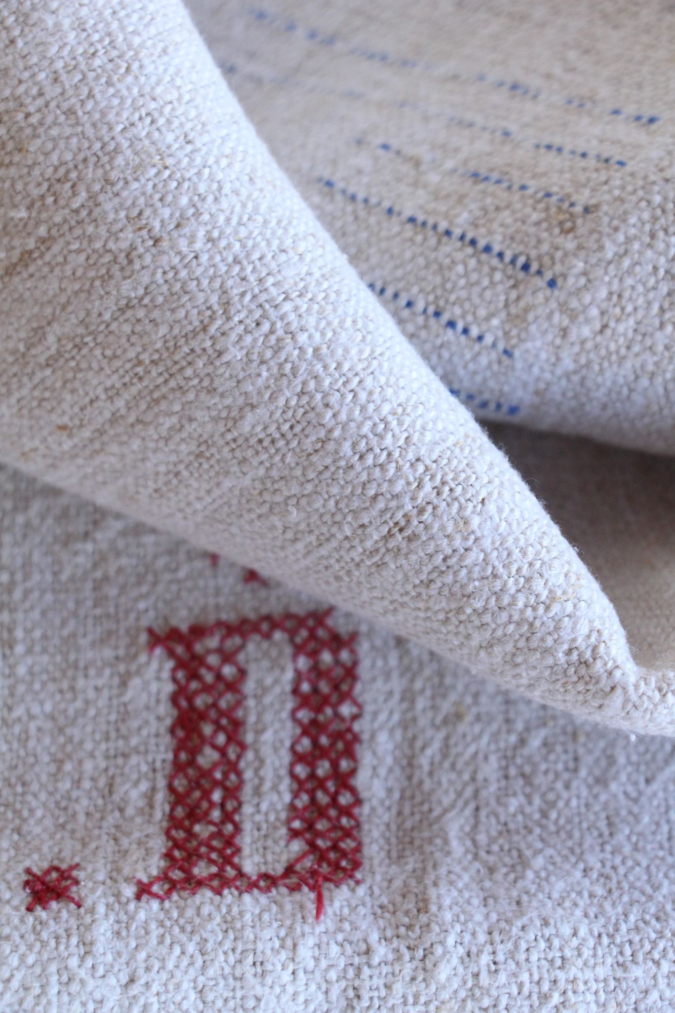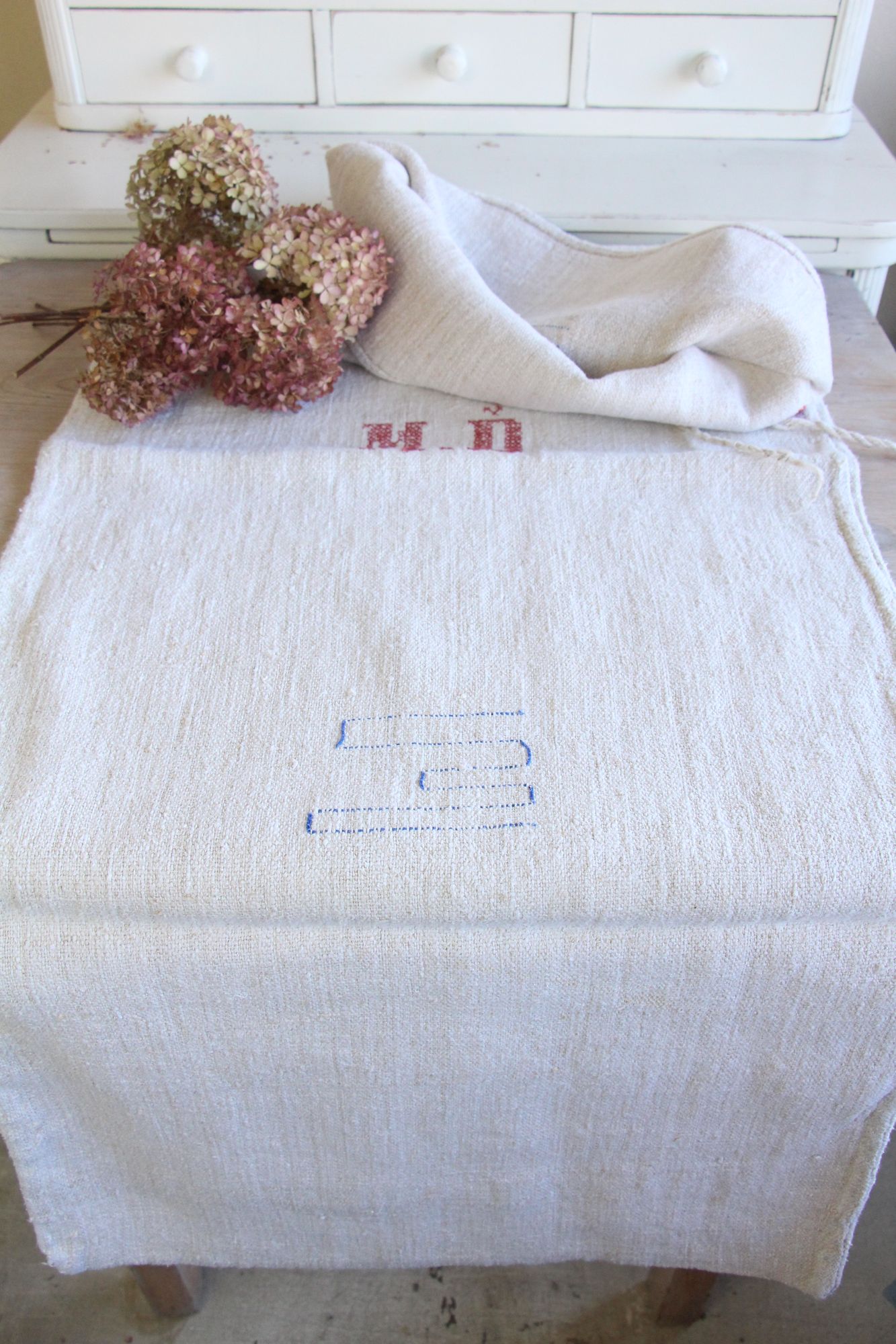 antiker Getreidesack aus Leine, Naturstoff, Tischläufer, Monogramm, langlebig, L 713