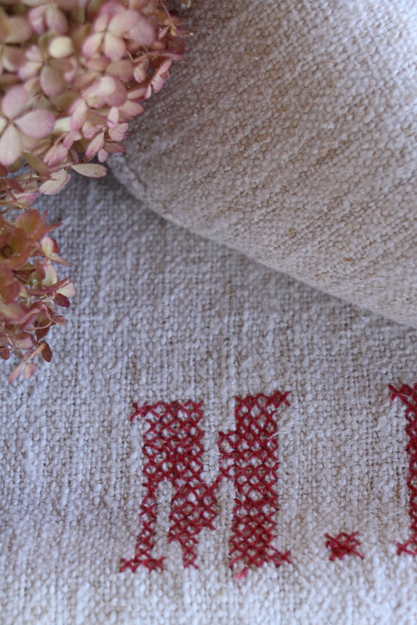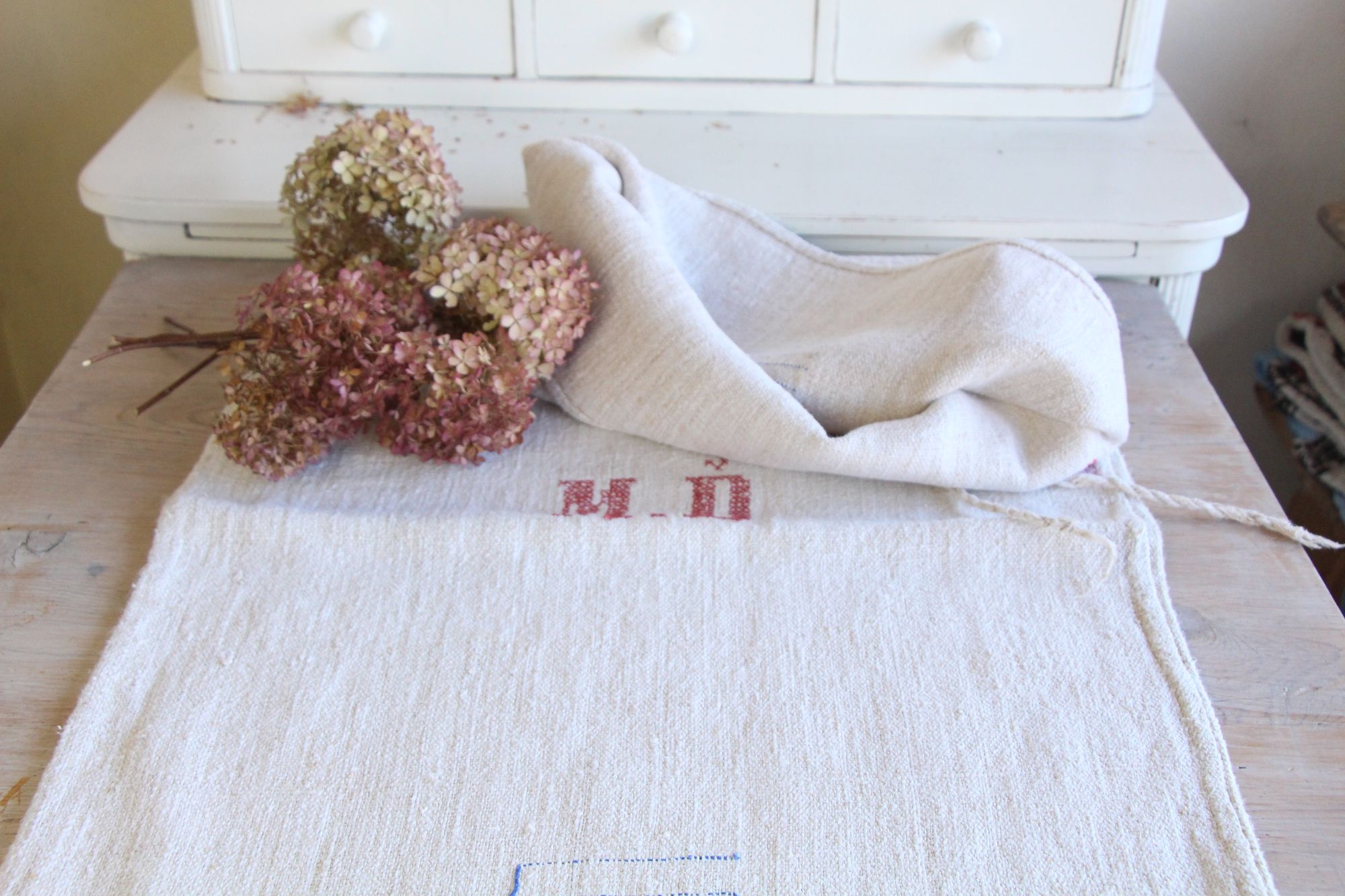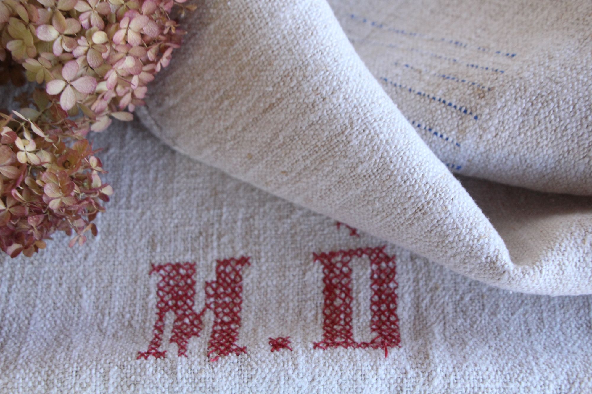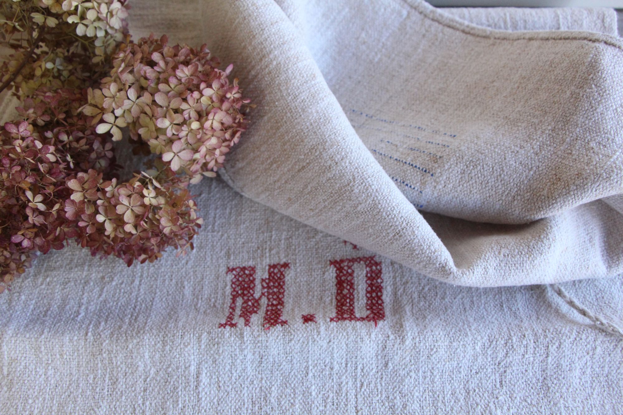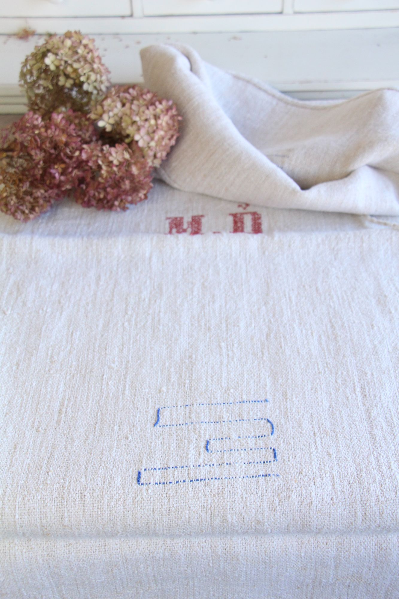 antiker Getreidesack aus Leine, Naturstoff, Tischläufer, Monogramm, langlebig, L 713