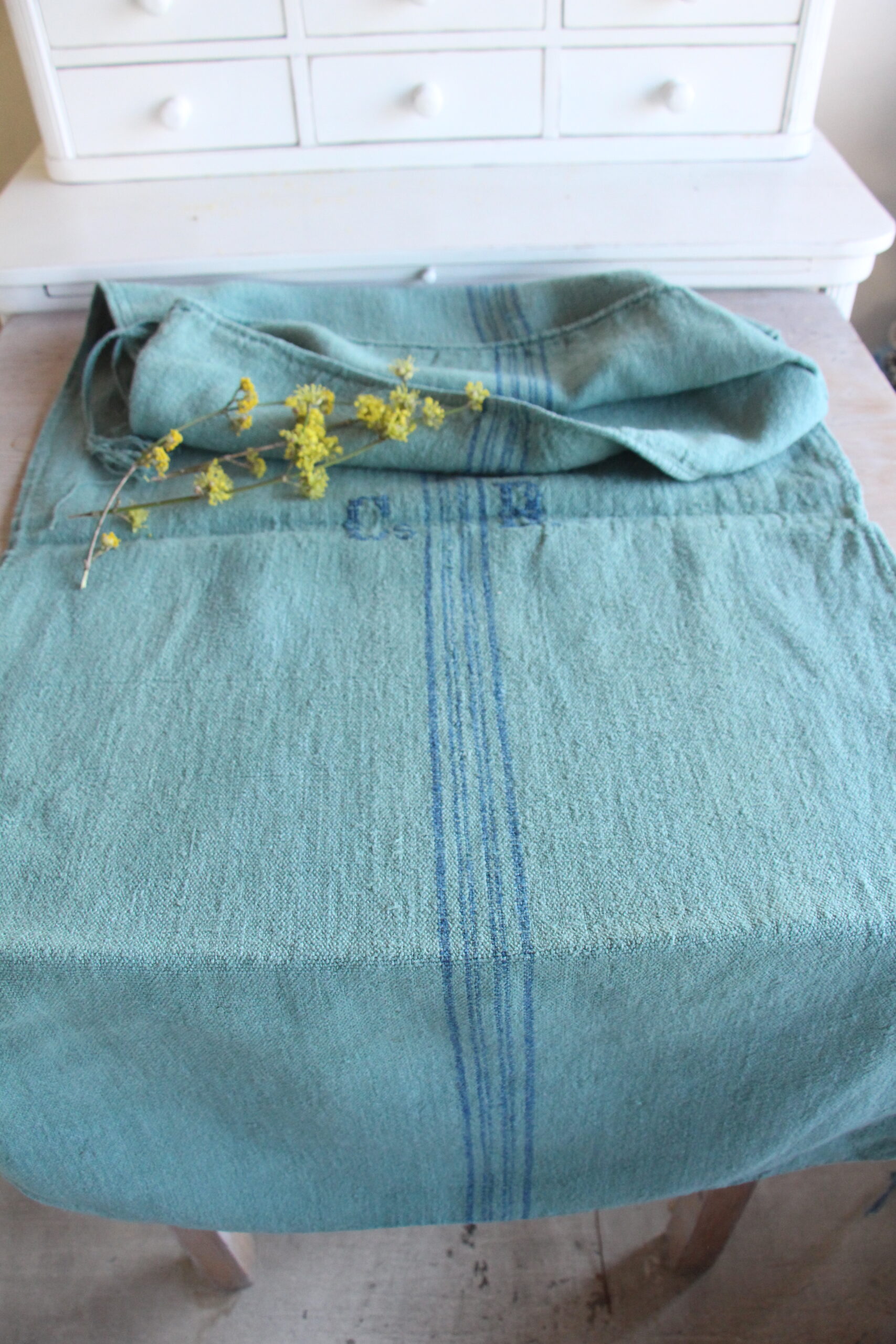 Stoff: 100 % biologisches und organisches antikes Leinen, etwa 100 Jahre alt und in ausgezeichnetem Zustand