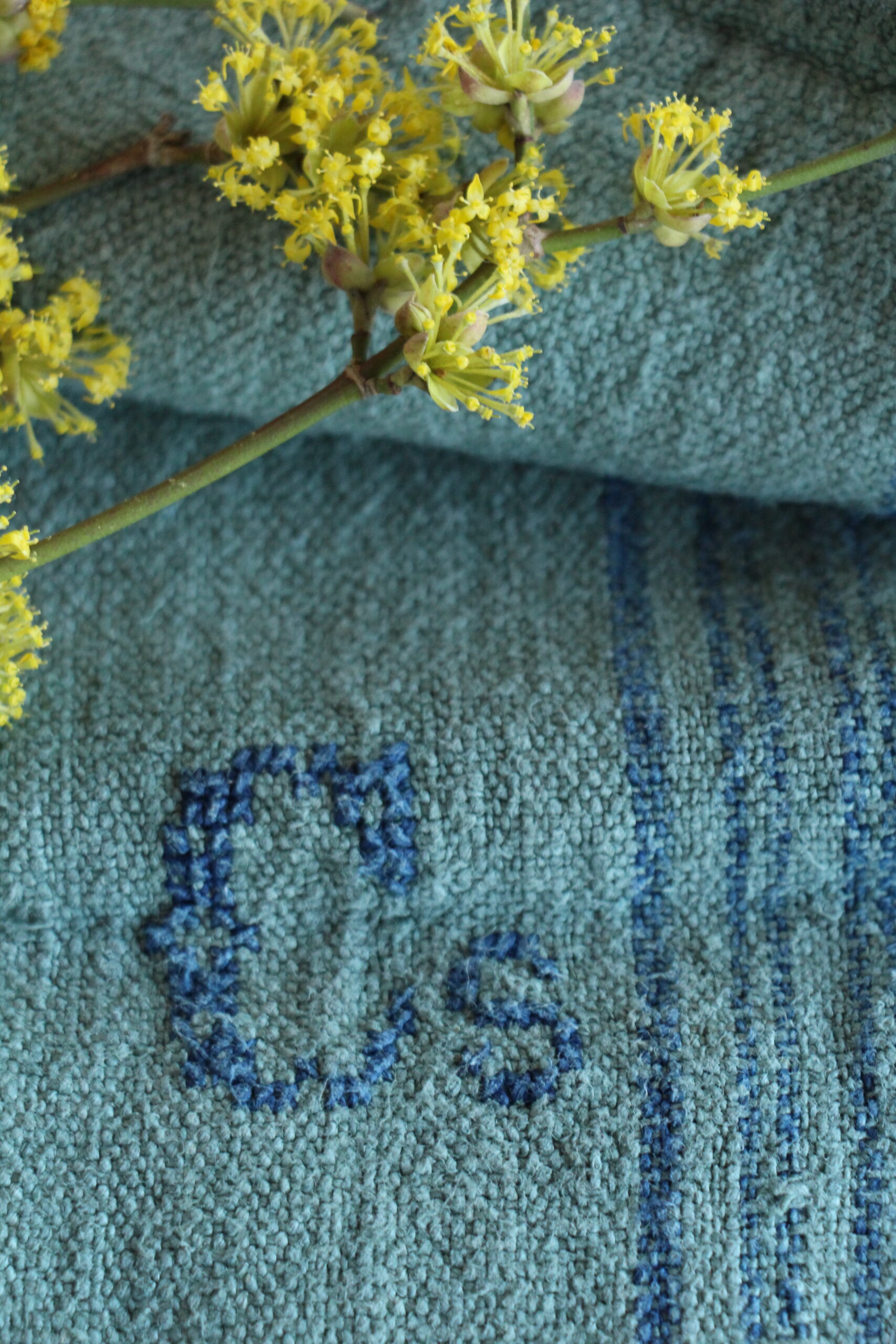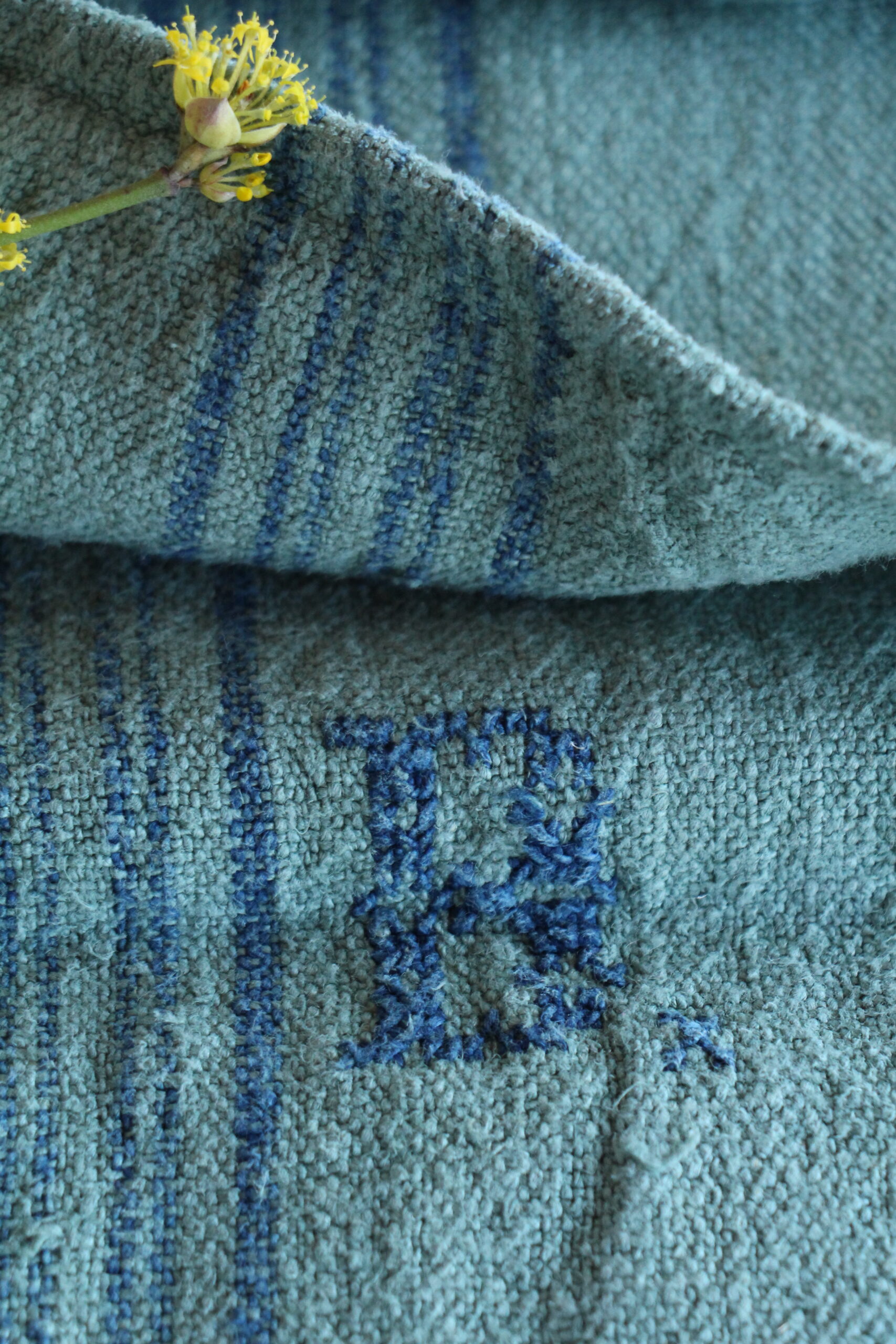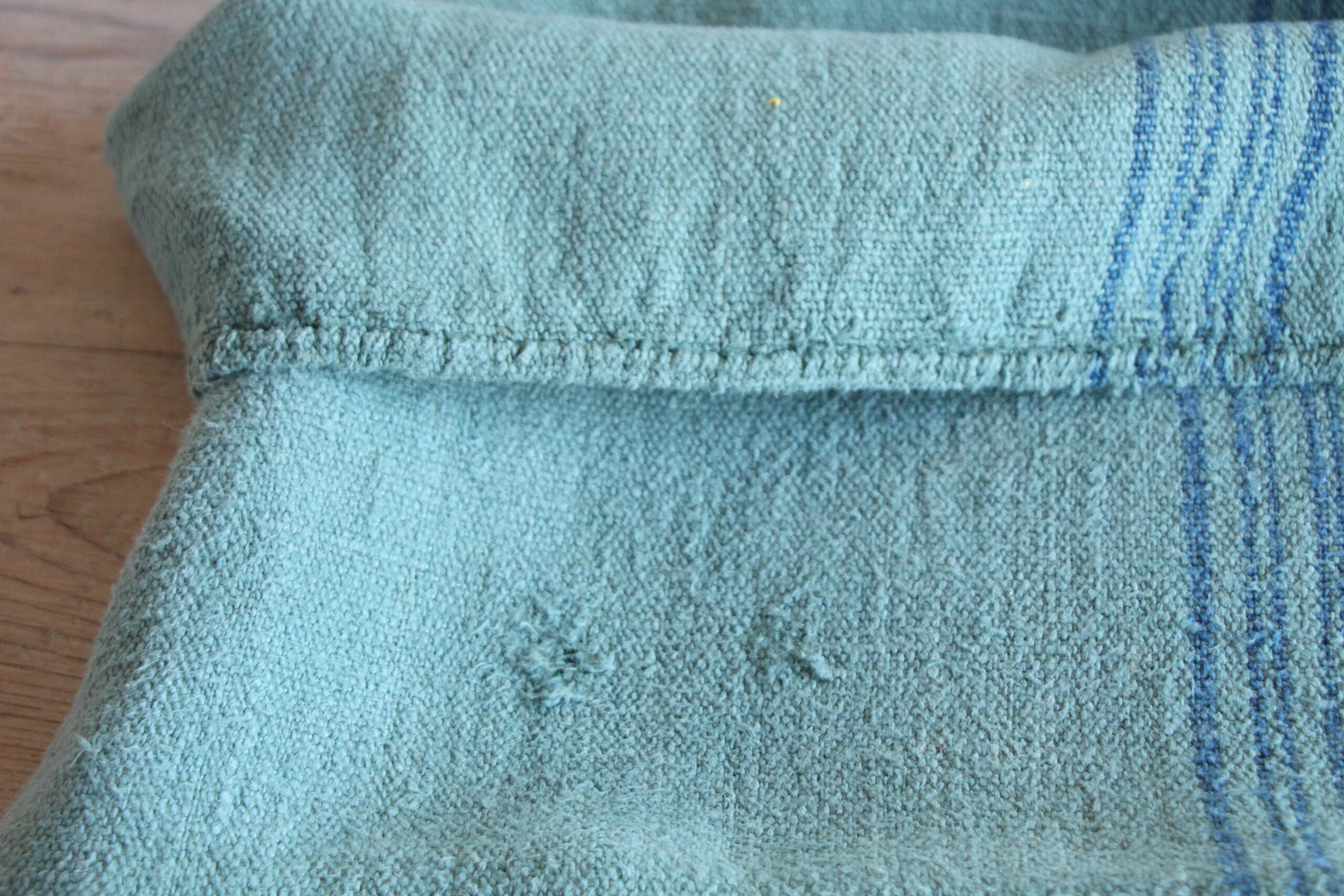Besonderheiten: Dieser Getreidesack hat eine kleine Beschädigung, ein handgenähtes Monogramm, die man auf den Fotos erkennen kann.