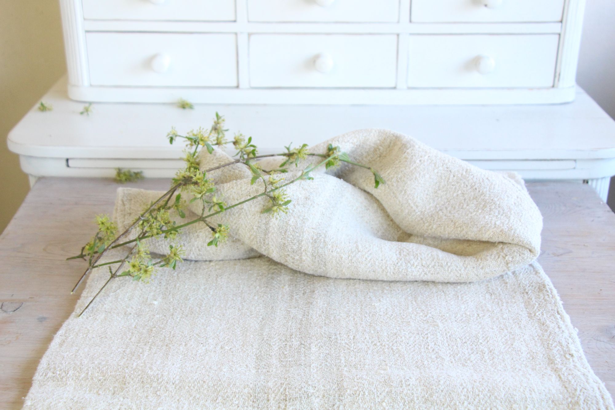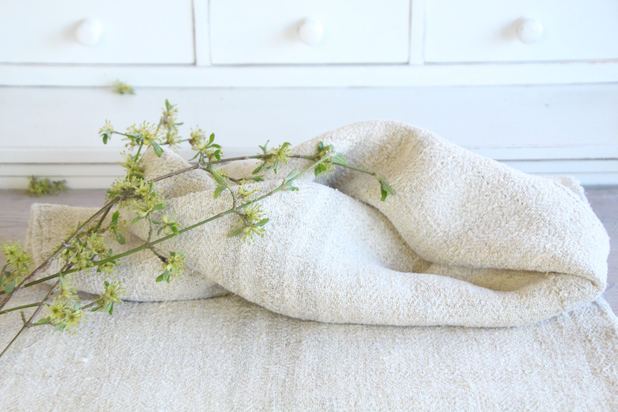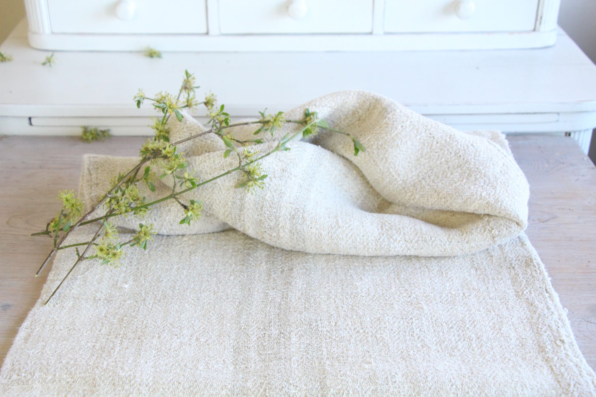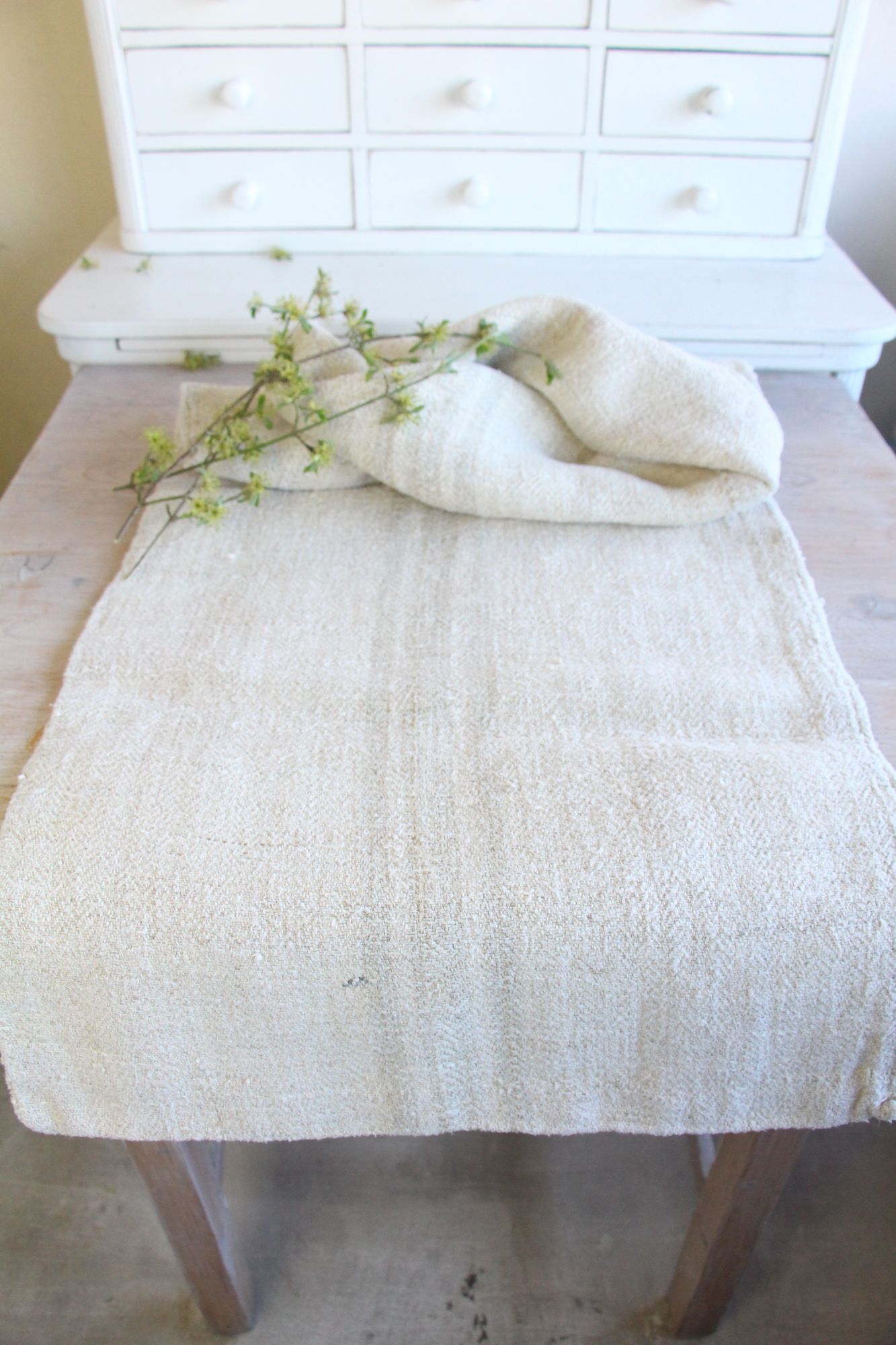 Stoff: 100 % biologisches und organisches antikes Leinen, etwa 100 Jahre alt und in ausgezeichnetem Zustand