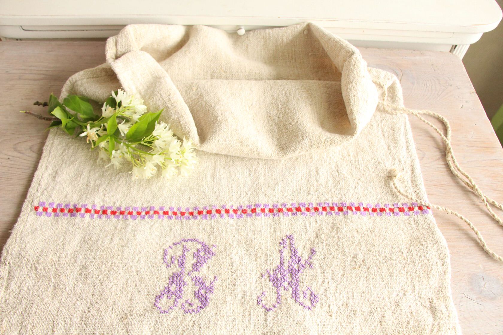 Einzigartiger antiker Leinensack Polster JX 976