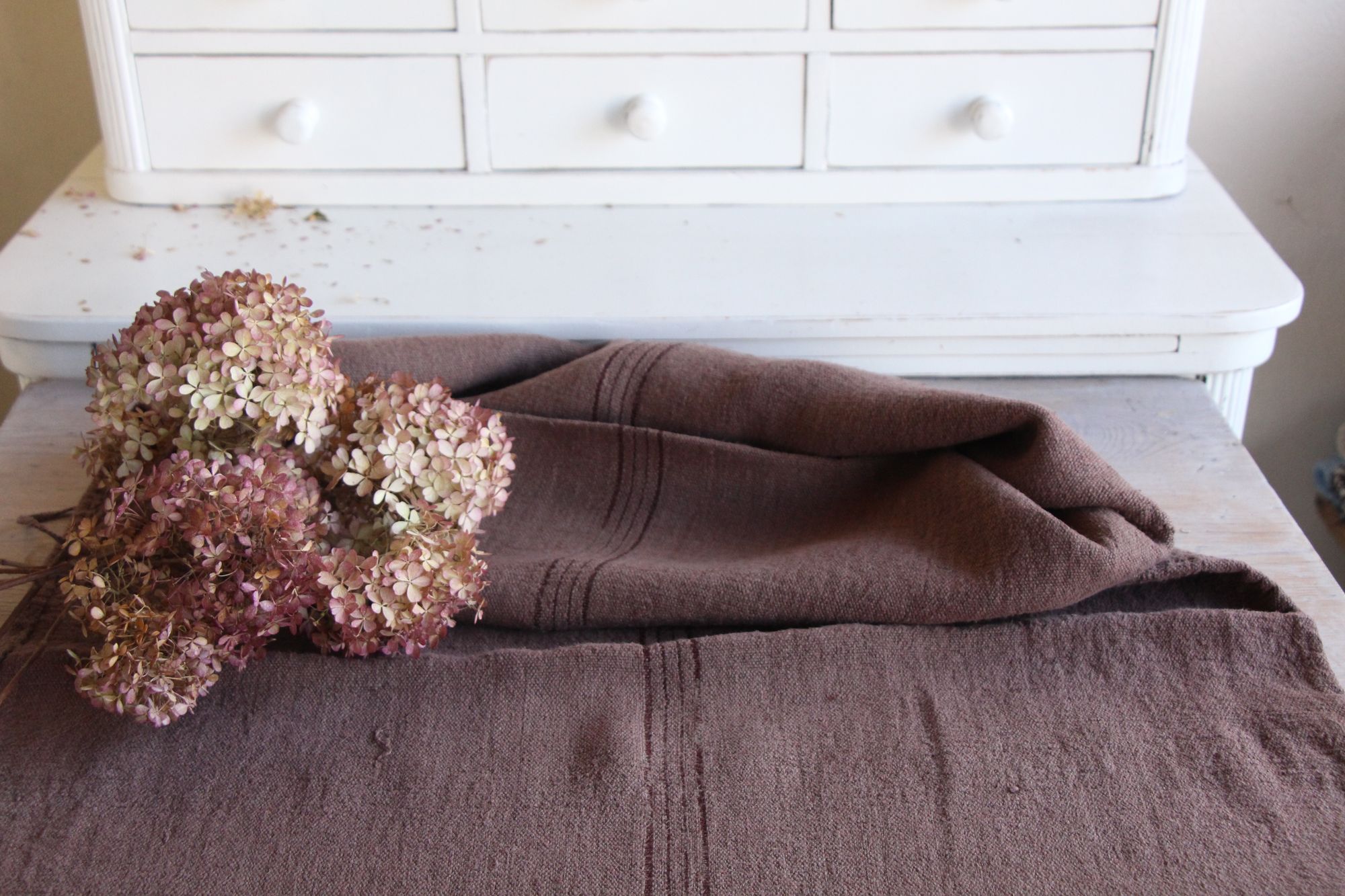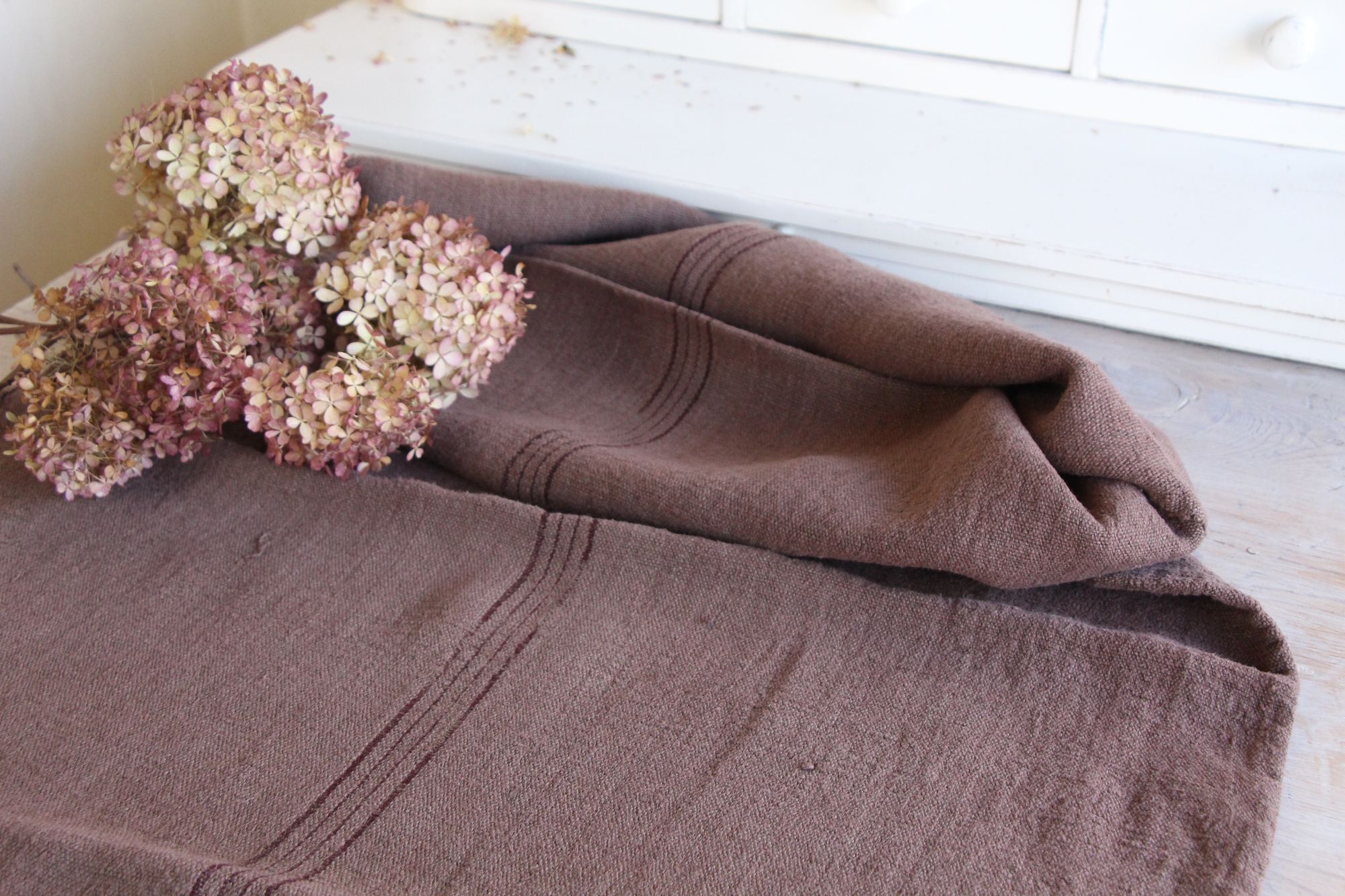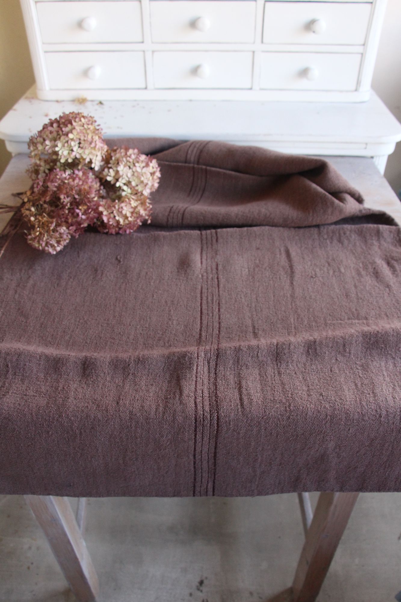 Stoff: 100 % biologisches und organisches antikes Leinen, etwa 100 Jahre alt und in ausgezeichnetem Zustand